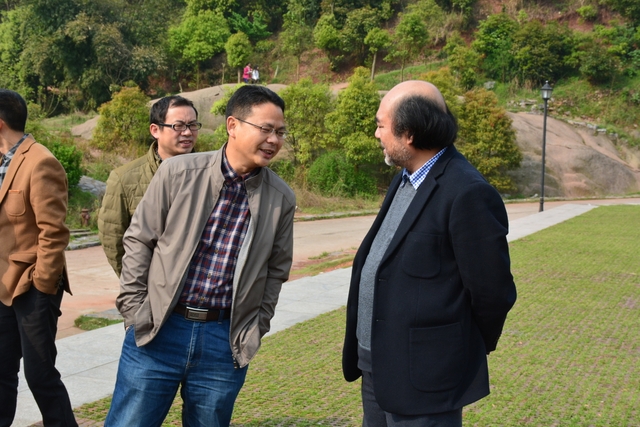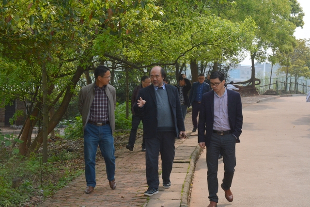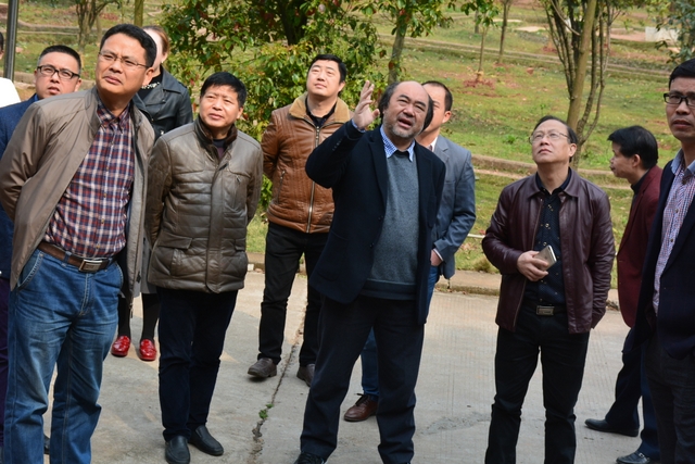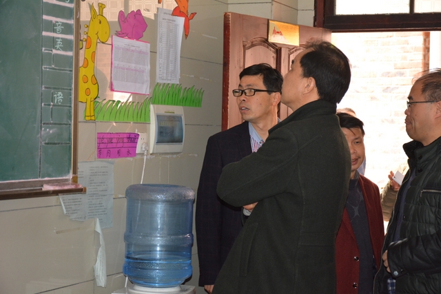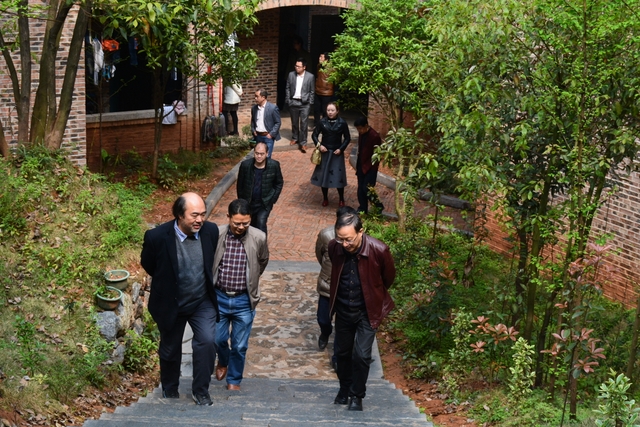 耒阳市委宣传部谢副部长向老家来的客人介绍正源学校情况