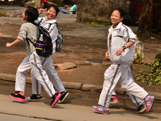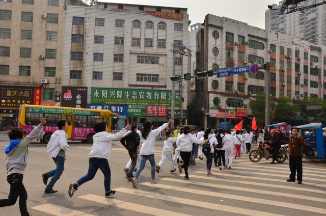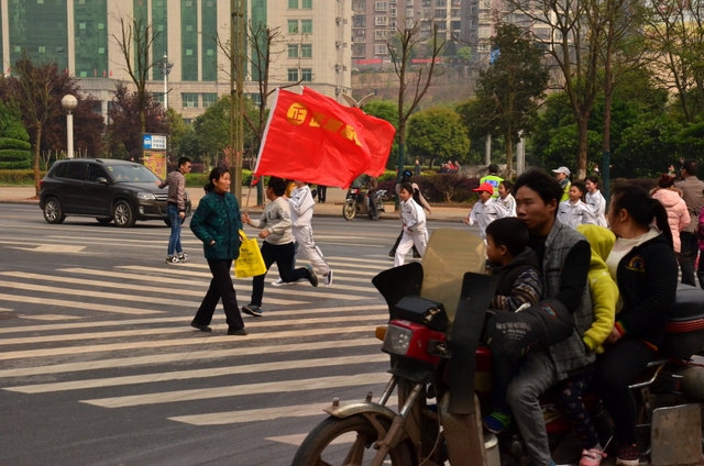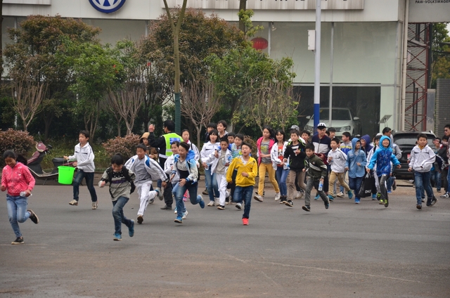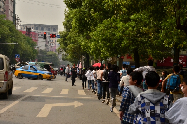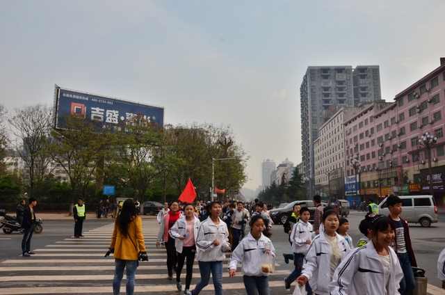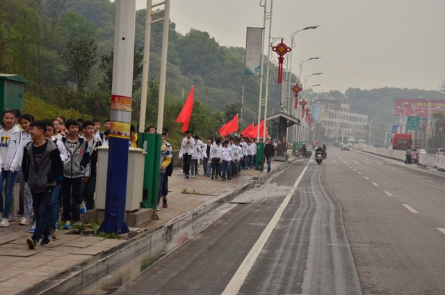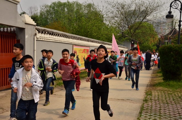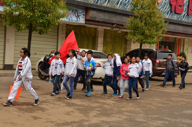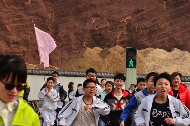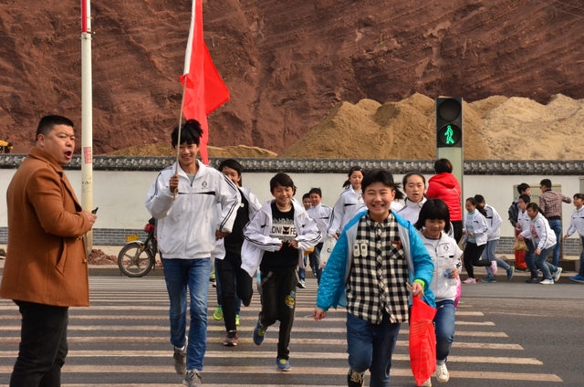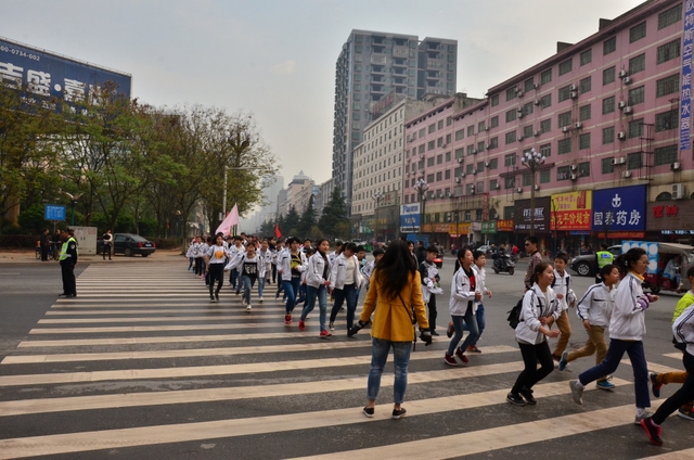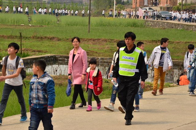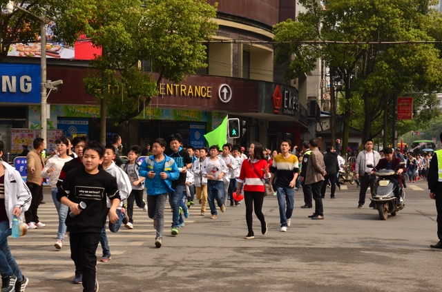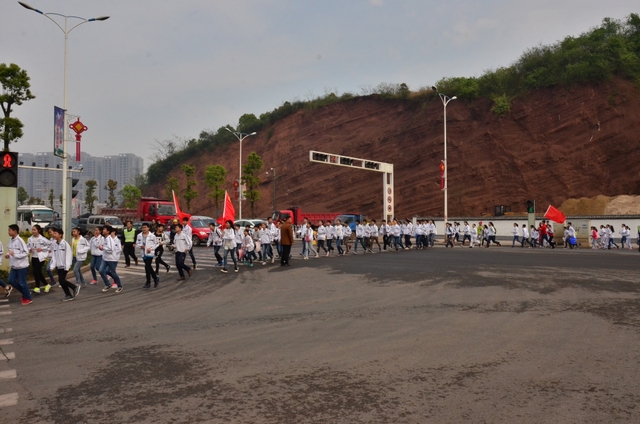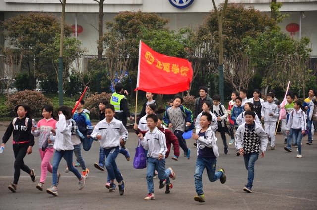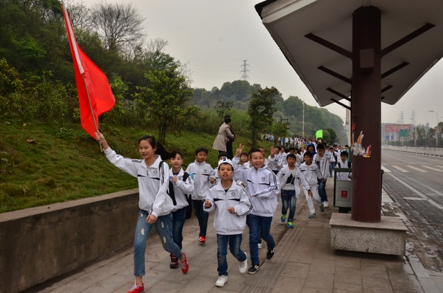 在每个交通路口,安保人员与教师指挥交通,疏导学生安全快步跑过。本人跟随学生步行时,发现学生队伍每走一小段就要小步慢跑一小段。正想提醒学生要保持体力,远足比的是毅力,是耐力。一男生神采飞扬对我说,别看我们年轻,也别看我们身材单薄,我们有的力气,有的是干劲。一女生则告诉我,过马路时,为不对交通造成混乱,学生队伍放一段拦一段。后面拦的一段为赶上前面队伍,就在老师指挥下小步慢跑一段。没想到挺细小的一件事,正源的老师竟组织得这么严密,正源的老师原来这么有经验。我想这就是罗胡子校长这么有底气的原因所在,也可能就是强将手下无弱兵的活生生注脚啊。