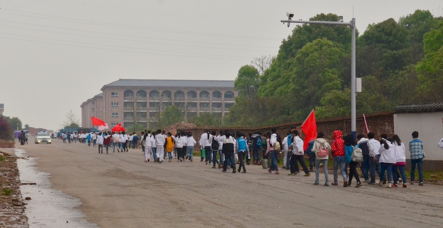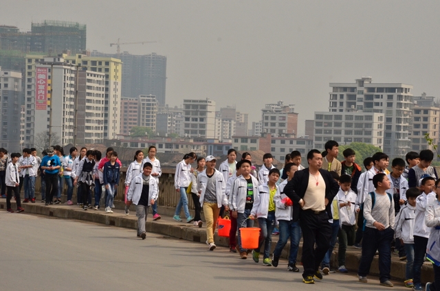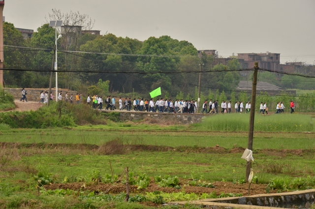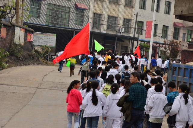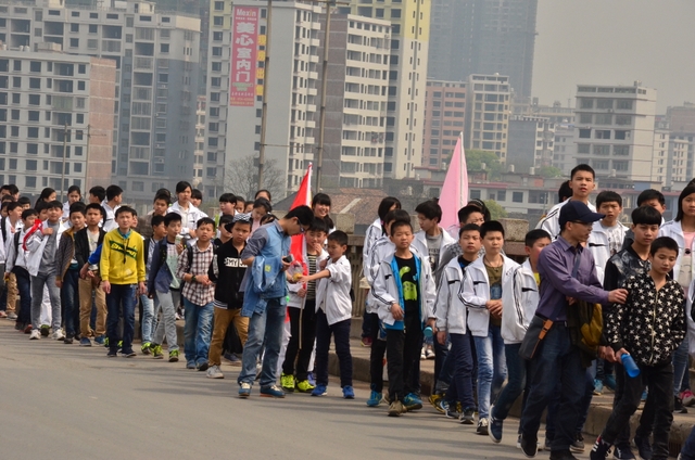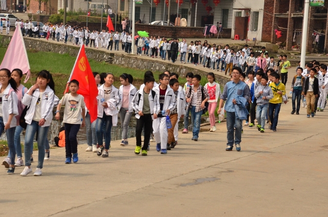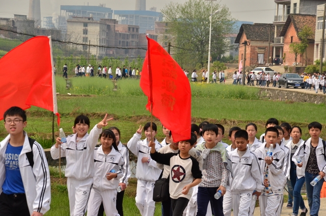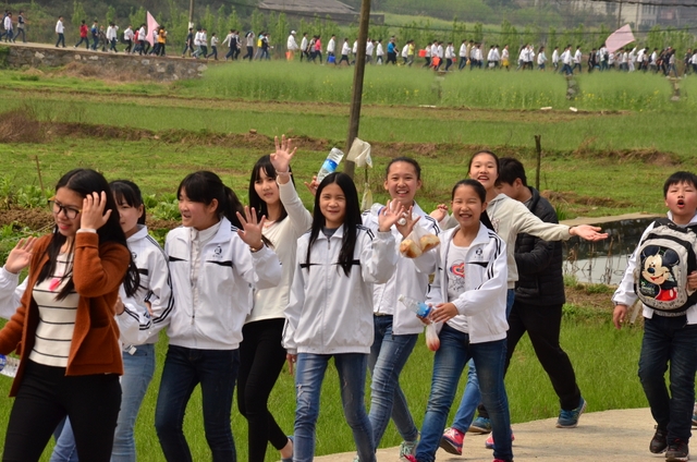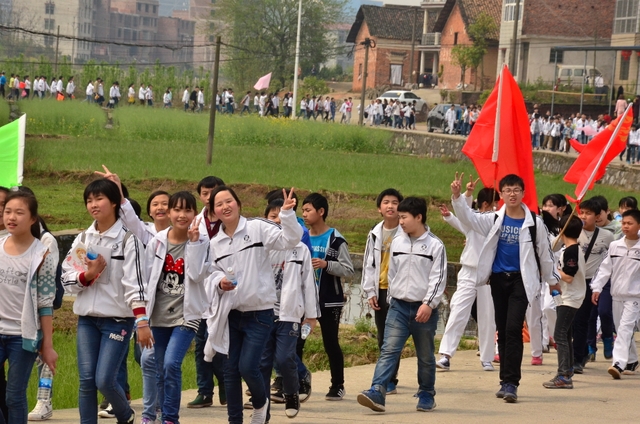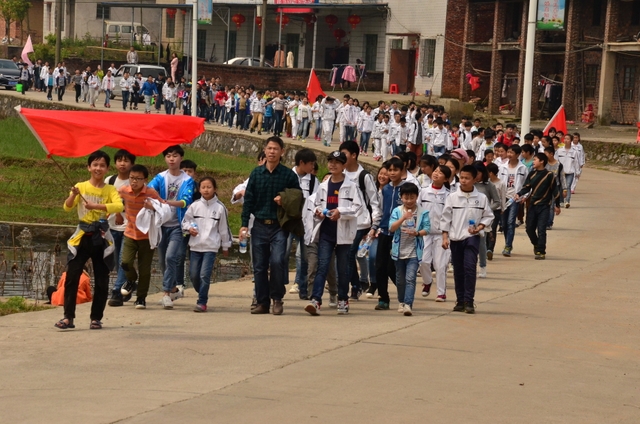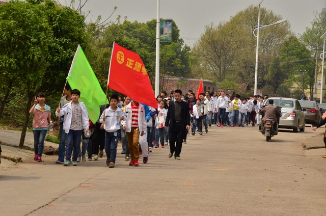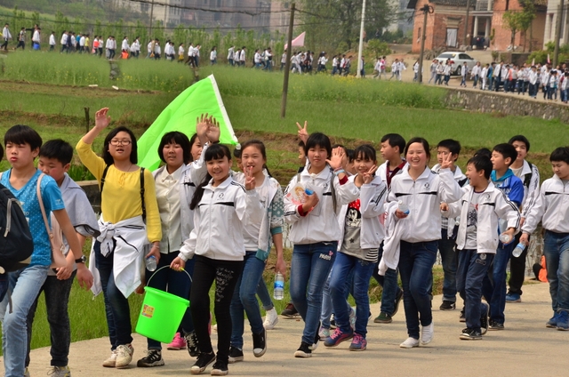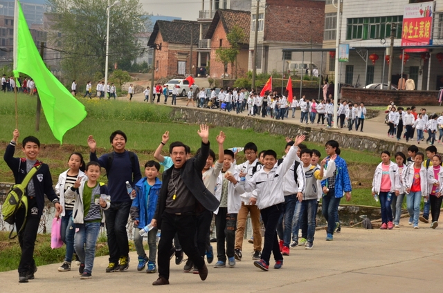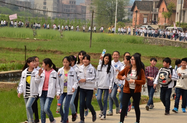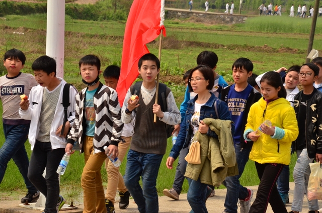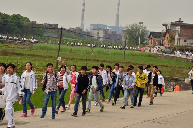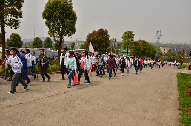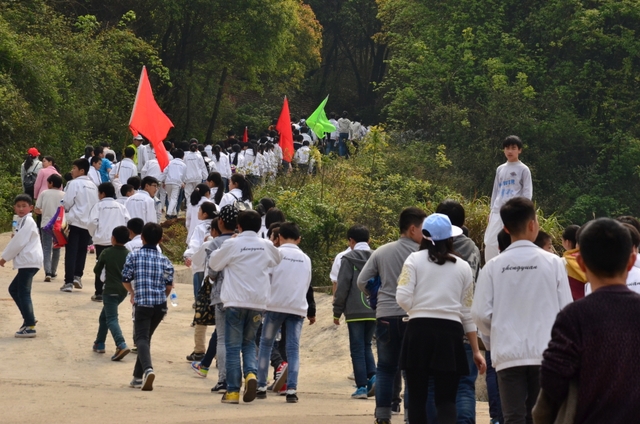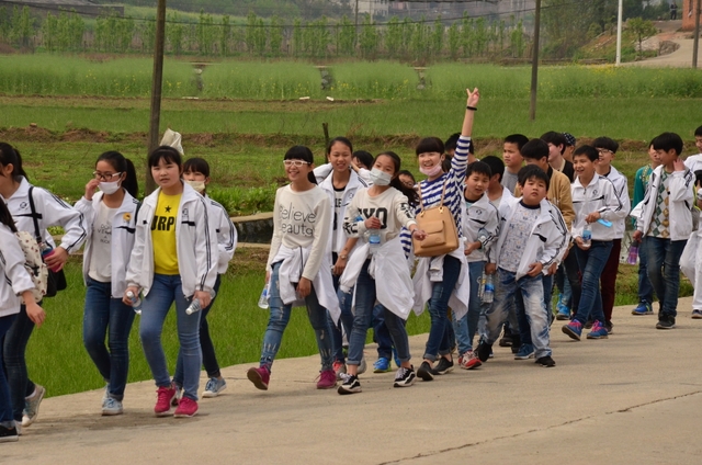 3月26日,正是阳春三月,江南草长,杂花生树,群莺乱飞的时节。初一年级2000名师生怀着飞向大自然的梦想,早早集合在学校前坪,接受校长罗湘云有关远足安全的训导。罗校长说,在这美好的春光中,让学生们亲近自然,放飞梦想,既可陶冶情操,又可锻练学生的毅力,与正源顺其自然的办学理念,与进校即思进取,怕苦莫来正源的精神紧密契合,无缝接轨。所以,在兄弟学校都因安全原因不敢组织这类大型活动时,正源却坚持了十多年不间断。训导完毕,每个班队列的第一个学生都手持校旗,红黄蓝绿等彩旗;班主任与另一任课老师跟班站立班旁。随着罗校长出发的号令一发,各班学生鱼贯而出,欢呼雀跃;班主任与另一跟班老师跟随一旁指挥,紧张有序,忙而不乱。
