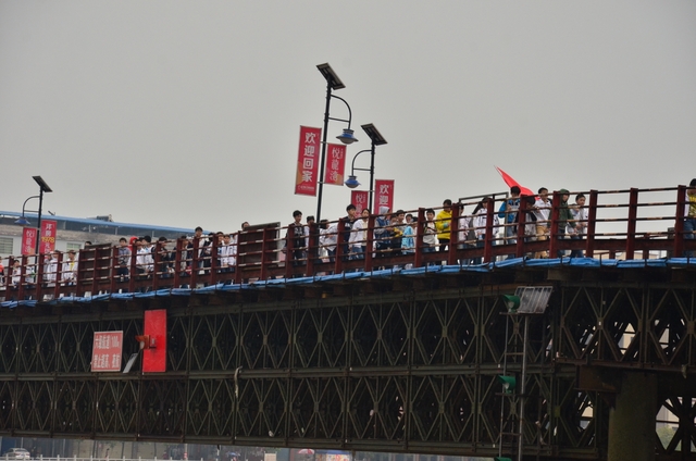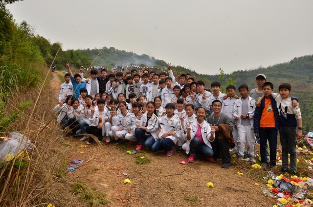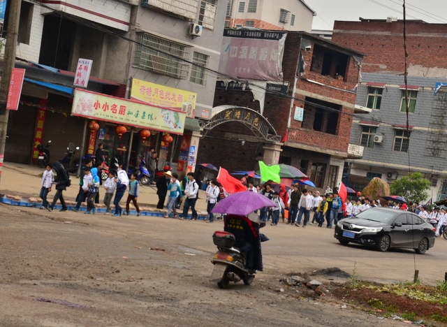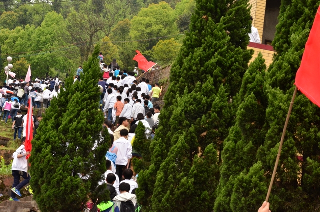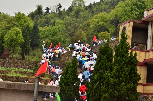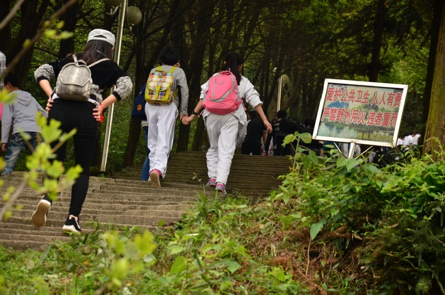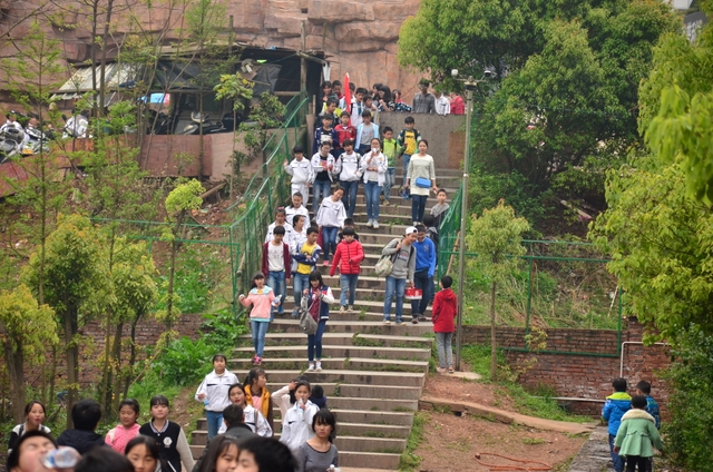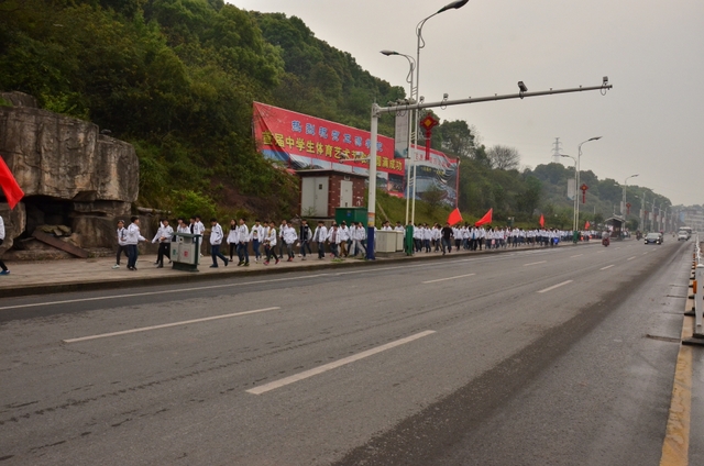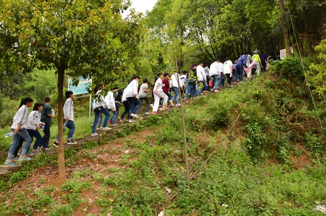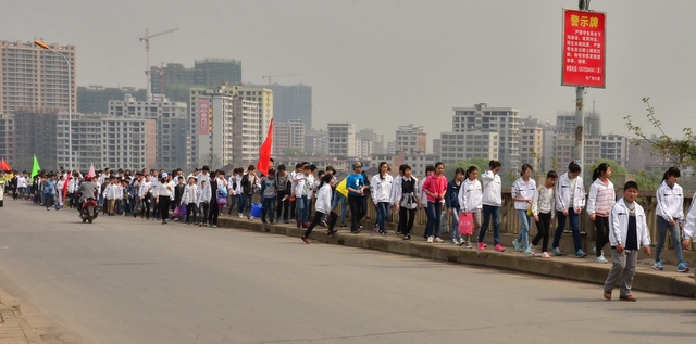 中午野炊后,同学们陆续从市广播电视台的下山路下山。虽然经过了休整,也充了讥,但上山容易下山难,赚得行人错喜欢,下山的路并不好走。尤其是下午3点半左右,天上飘起了一点小雨,更加磨炼起学生的毅力和勇气。看到学生们气喘吁吁,老谭主住大喊,流血流汗不流泪,掉皮掉肉不掉队。一支2000人的远足队伍,队伍整齐,步伐铿锵。下午5点,除1学生因肚子疼2学生因磨破了脚后跟上了一段后勤保障车外,全部在水东江补充一瓶矿泉水后,经耒河钢便桥折高速公路联络线,成功往返步行25公里回到温馨的正源校园。