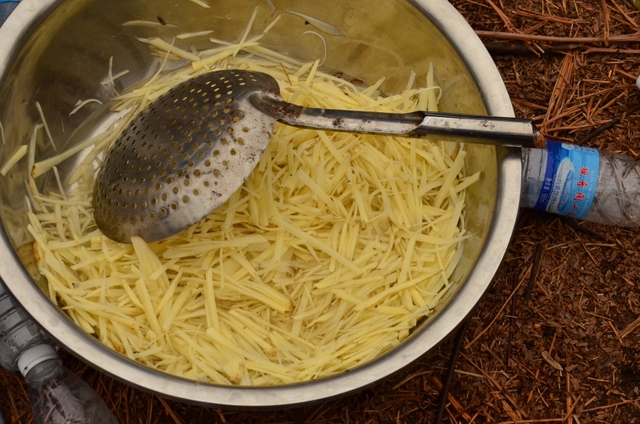 土豆丝,与食堂师傅比,刀工差了点,但在这儿比,就算好的了