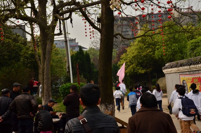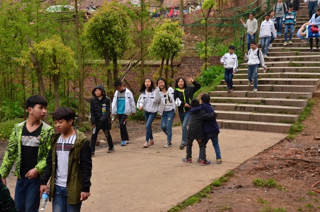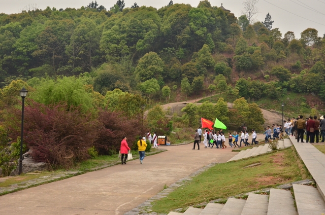 远足队伍经高速公路联络线,转上德泰隆大道;经五一路,直上群英南路,往东一小段,到蔡伦纪念园小憩。在蔡伦纪念园,学生们像一群欢快的小鸽子,吱吱喳喳问个不停:有的看到周谷城、胡绳的题词,便问周、胡两位爷爷到过纪念园吗;有的看到范晔的《后汉书。蔡伦传》,便问蔡伦发明造纸的诸多问题;有的在怀圣台,便对传音璧的传音原理问个不休;还有的同学,则对蔡伦发现的纸药及蔡伦在推进世界文明的排位特感兴趣;在蔡伦墓,有的同学问墓上的砖头为什么有花纹,有的则对郭沫若的题词惊叹不已。还有的学生,对蔡伦纪念园的花草树木皆有情;对耒阳八景诗中“唯有蔡池双月美”豁然开朗。蔡伦纪念园,到处是红灯高挂;四周墙璧,贴满了核心价值观及传统文化的精美字画,其教育熏陶作用弥满四周,让学生在玩中学,学得轻松,学得不知不觉。这大概就是读万卷书不如行万里路的原因吧。