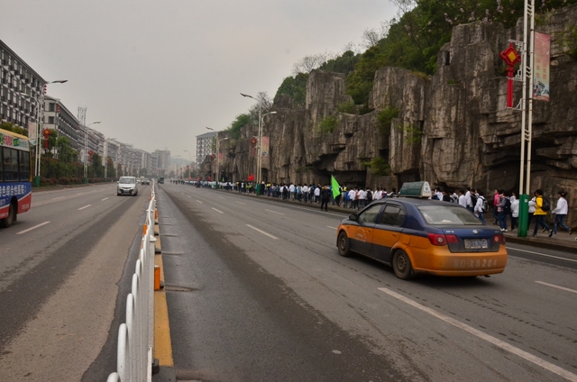 在迎宾大道边集结,准备过迎宾大道上青麓大道