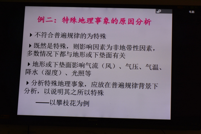 邹邵林教授首先从近期与高考命题专家库专家交流中掌握的信息侃侃而谈,说现在高考的趋势基本是学的不考,考的没学。邹教授接着解释说“学的不考,考的没学” 是说教材现成的案例不考,考的都是与日常生活紧密相关的鲜活的案例,而教材中学的原理规律方法都还是考的,万变不离其宗,每年高考考的都是这些东西。邹教授特别强调要用好历年的高考试题及部颁标准答案,尽量不重复学兄学姐们的错误;反复演练自己曾经做错的试题,不热衷于题海战术;提高答题能力,看图,审题,穷尽信息,建立联系,加强规范化练习;多感触鲜活的地理素材,质疑提出问题,再运用学过的原理规律和方法分析和解答问题;选材模块的答题要特别慎重;要从历年的高考试题及答案中摸索出答题的方法规律及规范化要求。最后,邹教授简要介绍了高考地理命题库专家变化情况及各个专家的重要研究方向及命题偏向爱好。邹教授举了一系列高考地理题目及答案,反复论证自己的观点,循循善诱,深入浅出,深受学生欢迎。有学生说,听邹教授一堂课,有豁然开朗,胜读十年书的感觉。