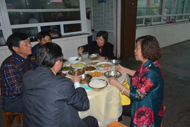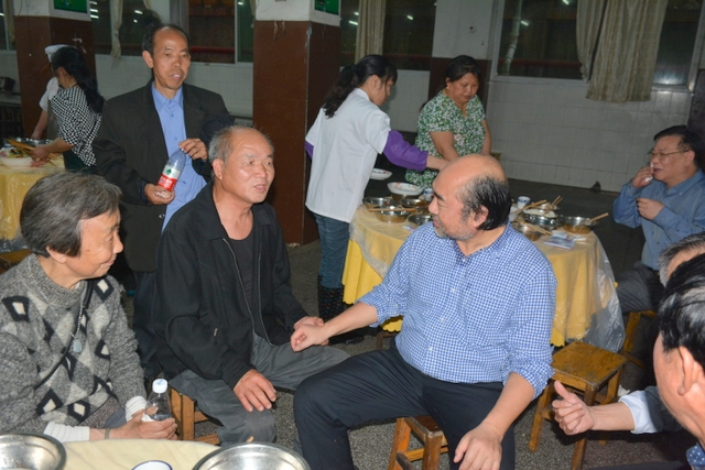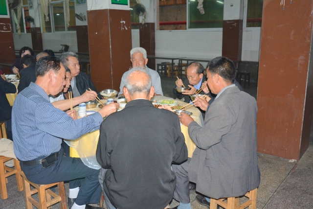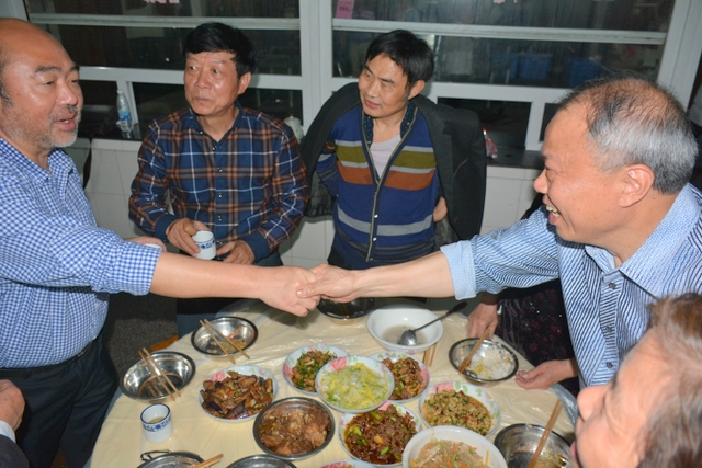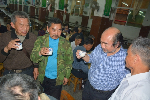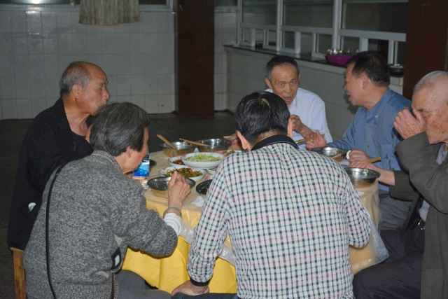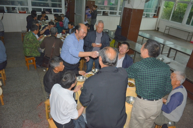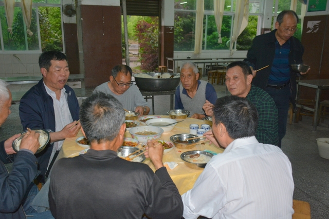 由于行程安排关系,客人们下午还要去顺湖等其他地方游玩,只呆了个把小时便离开正源。晚上,受罗校长盛情邀请,原耒阳县第十一初级中学初七班全体聚会师生到正源食堂享受了丰盛的正源美食。罗校长在席间与各位客人举杯,为他们这份珍贵的同学情师生情,为他们这种充满正能量的同学聚会表示深深的祝福。
