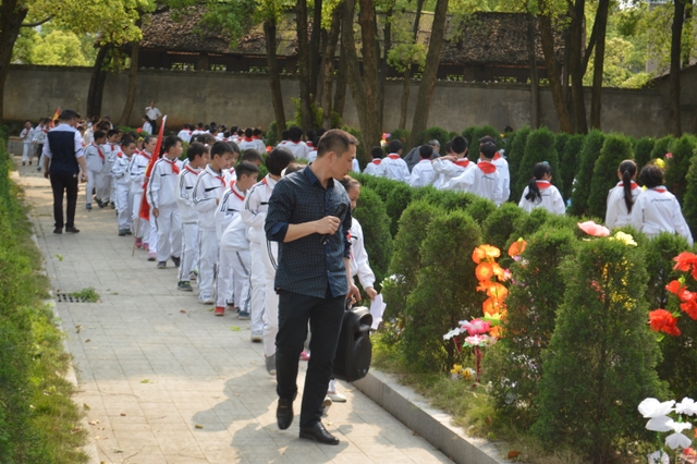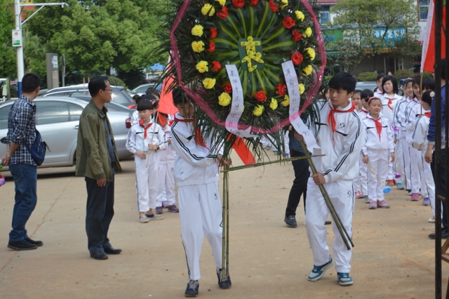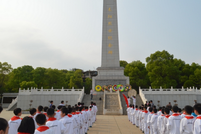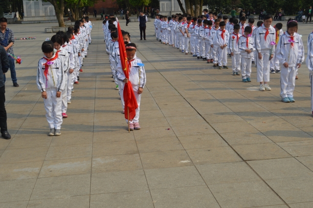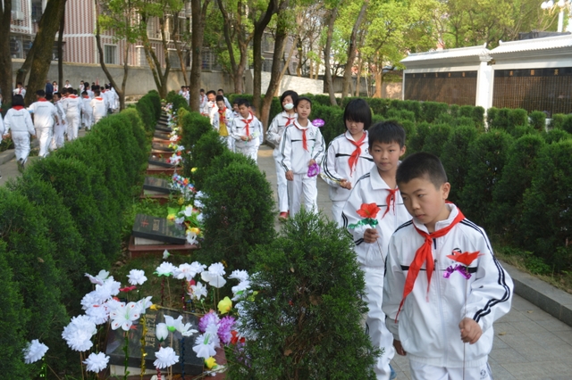 活动在师生对先烈无限缅怀和追思的氛围里拉开序幕。整个活动由学生周龙结主持,少先队代表在队旗的引领下向烈士敬献花圈,全体师生向革命先烈默哀以表敬意。接着由小学部德育主任谢红云老师和少先队员代表阳思语同学分别讲话,谢红云主任对同学们提出殷切希望,希望同学们能永远铭记革命先烈,用自己的实际行动寄托对烈士的哀思。阳思语同学表示我们同学们要继承先烈的遗志,为家乡的建设、为祖国的繁荣富强而努力学习。随后进行了立志宣誓仪式。最后,同学们在烈士墓前缓缓走过,把手中的花献给烈士们,并聆听阳明权主任讲述他们可歌可泣的事迹。