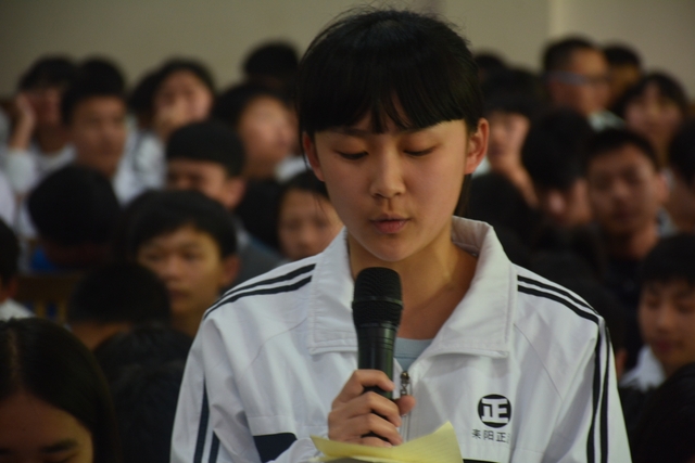 校长罗湘云、年级主任倪南辉、德育主任刘文、教务主任梁初贤在主席台就座。校长罗湘云作了激情洋溢的讲话。罗校长说,这一届初三年级,给校长最多的是感动。这一届初三学生,不管是精神风貌还是纪律作风,表现都是相当不错的,让我这个校长看到了希望,也让老师们看到了希望。罗校长向同学们介绍了整个耒阳今年中考的严峻形势,由于受学位限制,今年全市将有一万初三毕业生不能升入高中学习。罗校长希望同学们认准目标,切合实际,抓准最后两个月时间,努力拚博,争取考出自己理想的成绩。罗校长介绍说,正源今年复读生周孝金同学美术成绩已达清华大学美术学院分数线,在湖南全省排名第一,在全国排十一位,估计文化成绩没问题。罗校长鼓励同学们可发扬特长,通过美术、音乐、体育等特长考入理想学校。罗校长简要介绍了正源国际化进展及美国社区大学情况,启发同学们人生的路千百条,但要抓住关键的几步。最后罗校长鼓励同学们坚持就是胜利,苦读两个月,夺取今年中考新辉煌。