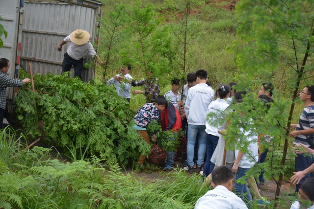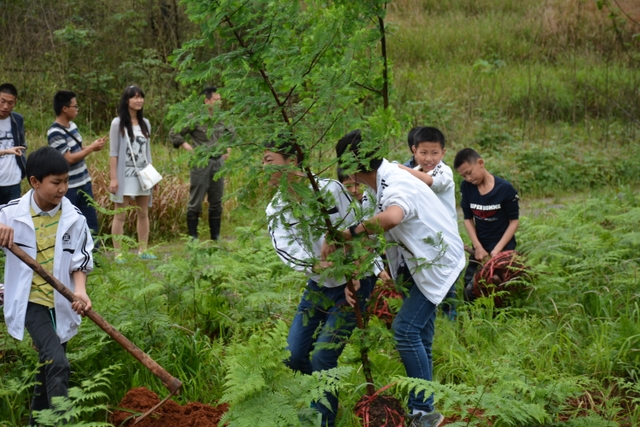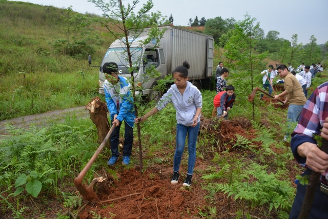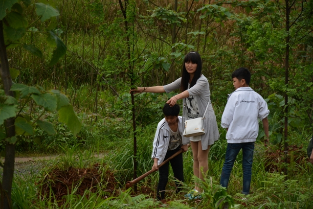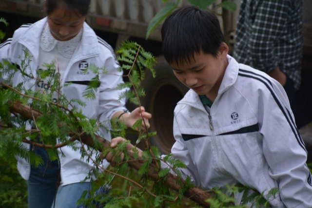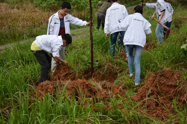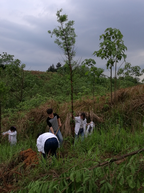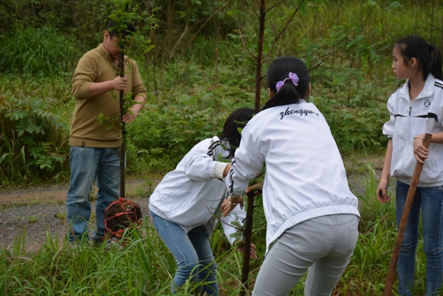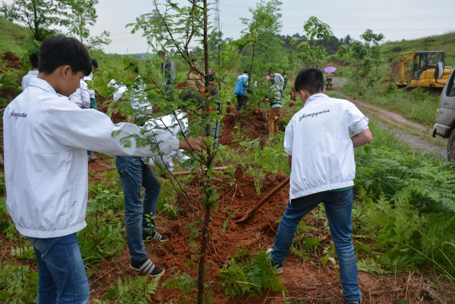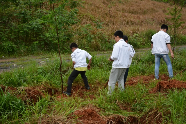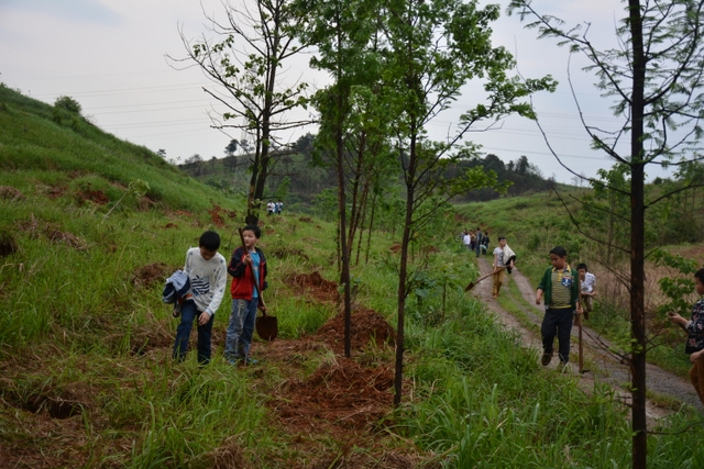 正源学校工程部的人早早等候在工地边,他们满面笑容向前来参加劳动的学生发放劳动工具、水杉树苗。按老师要求,同学们三个人为一个小组,组内自己分工合作,抬树苗,放树苗,扶正,培土,踩实。每一个同学都尽自己所能,不怕苦,不怕脏,高高兴兴,毫无怨言,以自己能为学校的农场增添一抹绿色而自豪。昔日荒凉的小山坡,一下子成为欢乐的海洋。
