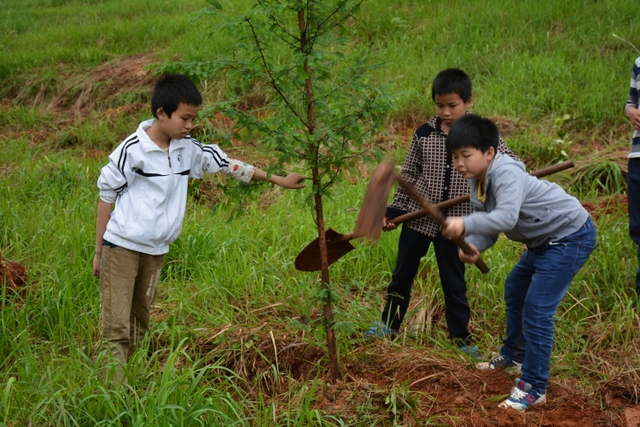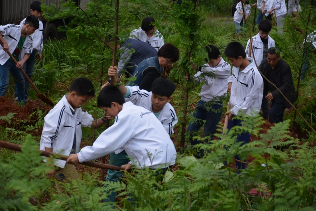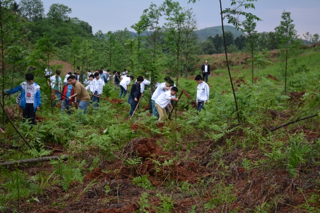 4月20日下午,小学六年级40多名学生踊跃报名到正源同仁农场进行义务植树活动。为了不影响学生正常的上课秩序,同学们在上完第六节课后才开始从学校出发。罗校长十分重视这次植树活动,亲自带队。