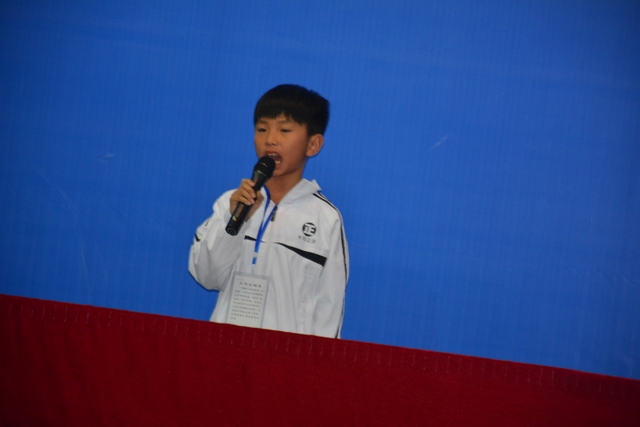 比赛现场,各班以其铿锵有力的气势,充沛饱满的感情,自信大方的形象赢得老师和同学们的阵阵掌声。比赛内容可谓是包罗万象,有的朗读带有强烈爱国情怀的诗歌,其朗诵的慷慨激昂可谓气贯长虹;有的表达师生之情,轻悠的配乐中,带领着我们走进诗人的心田,感恩老师;有的歌颂父母,引导同学们懂得感恩,懂得尽孝......