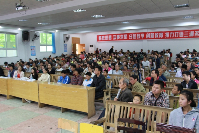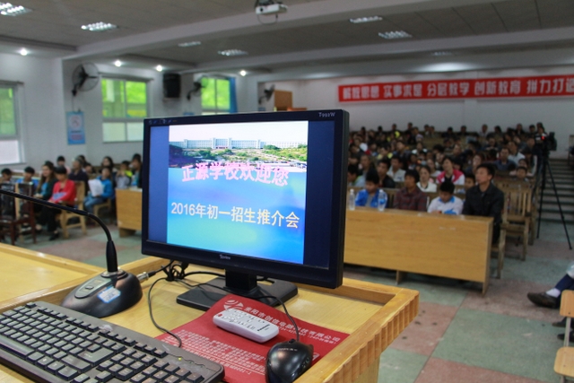 继3月26日至27日,学校利用双休日举行第一期2016年初一招生推介会后,4月23日上午,学校再次举行第二期初一招生推介会。来自不同乡镇的学生及其家长四五百人参加会议。