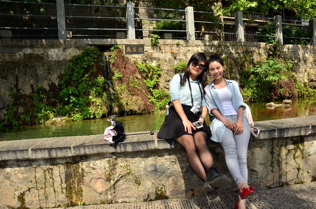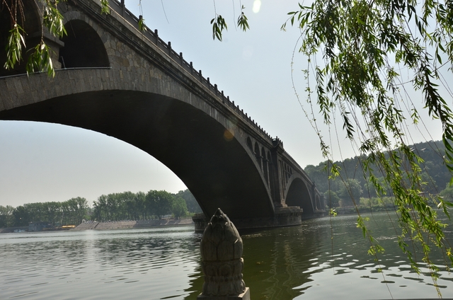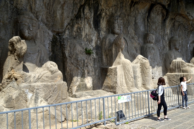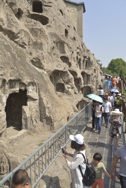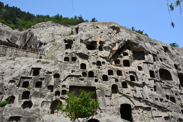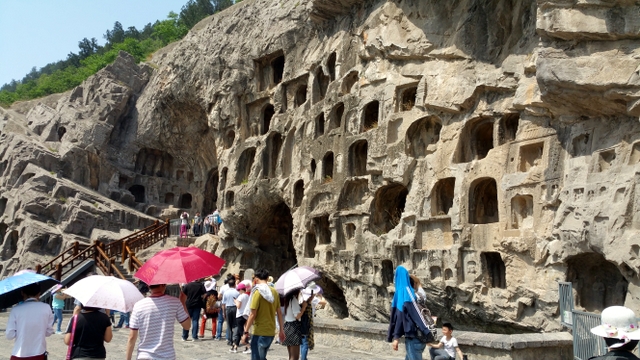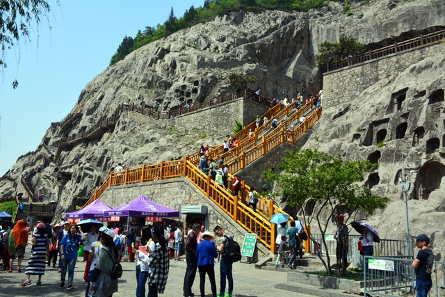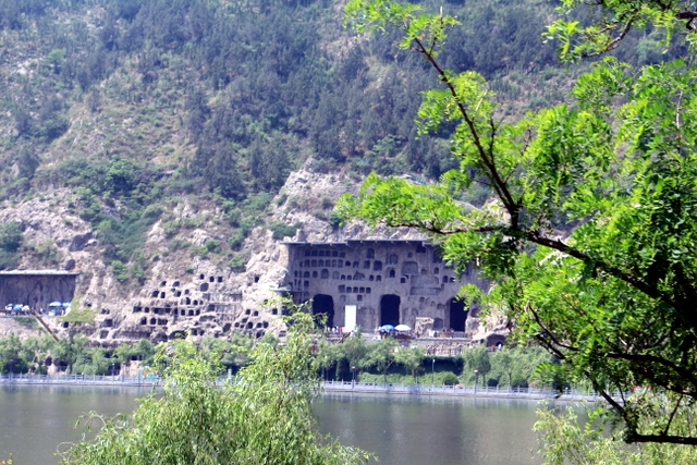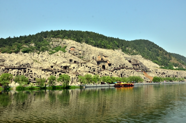 石窟尽头还有一座桥连接两岸,过了桥来到东岸,回望龙门石窟,更加惊叹它的宏伟。