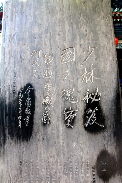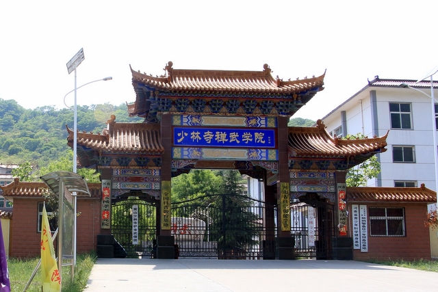 山门为少林寺大门,宏阔大气,器宇不凡。清雍正十三年(1735年)修建,1974年重新翻修。门额上有清康熙帝亲笔所提“少林寺”三个大字。