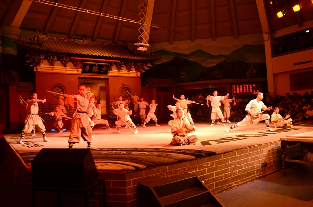 寺内建有武术学校,处处是训练的学生和表演的学生,一派生机勃勃景象。拳术、气功、十八般兵器挥舞……个个精神抖擞,身手不凡,让人眼花缭乱,目不暇接。罗校长感慨:孩子们精神抖擞,给人一种积极向上的震撼。相比那些读死书教死书的,他们也不见得就是等闲之辈。