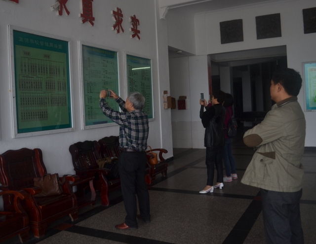 学校宣传处主任郑少君(右)代表罗校长到南校门迎接来自家乡的客人,喜不自禁