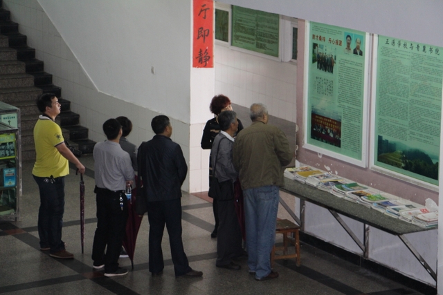 当日上午,罗校长、梁老师夫妇到学校门口迎接,并陪同老领导一行参观了教师公寓——东苑,中、小学生塑胶运动场,学生食堂、初一年级课堂,全开放式图书馆——交流大厅与小学生“怡心读书堂”,学生宿舍,还体验了学生跑操其中的千米西环山道路,之后又在会议室进行了座谈。罗校长汇报了学校的基本情况、办学理念、办学成果以及发展愿景。