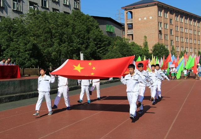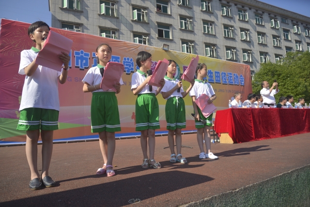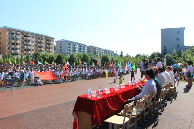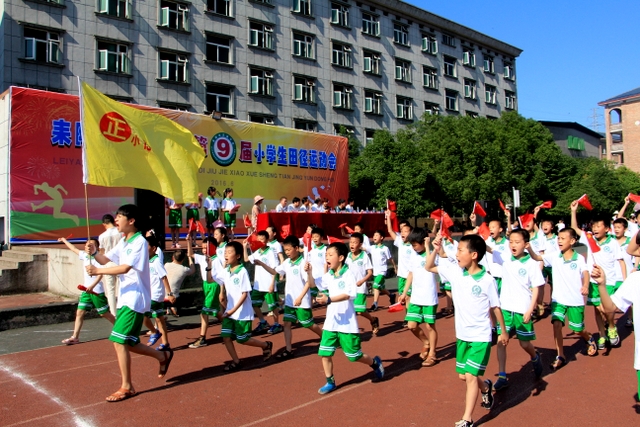校长罗湘云作了简短却又激情澎湃的致辞。罗校长说:“骄阳似火,激情如飞,在全世界儿童都在以各种方式欢庆”六一”国际儿童节的时侯,正源4896名学生集聚在小学生运动场,隆重举行第九届小学生运动会开幕式,这是一次非常有意义的活动。我先代表正源学校梁晓斌董事长及1万5千多师生员工向孩子们致以节日的祝贺!向老师及家长道一声辛苦了!现代教育,应该德、智、体全面发展。这届运动会,是小学部体育教学的一次大展阅,希望同学们发扬更快、更高、更强的奥运精神,赛出风格,赛出水平。最后预祝正源学校第九届小学生运动会圆满成功!” 罗校长的讲话简短有力,赢得了全场雷鸣声的掌声。小学部主任罗俊豪作了简短讲话,对本届运动会提出了殷切期望。李东升同学代表全体运动员宣誓,表示友谊第一,比赛第二,赛出风格,赛出水平;贺哲老师代表全体裁判员宣誓,表示严守竞赛规则和裁判纪律,秉公裁判,文明裁判。校长罗湘云宣布第九届小学生运动会开幕。