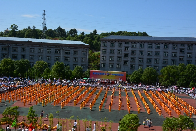 6月1日上午8点18分, 阳光普照, 激情似火, 正源学校小学部4896名学生以参加第九届运动会开幕式的方式,隆重庆祝“六一”国际儿童节。少儿心志当拿云,谁英雄,谁好汉,运动场上比比看。2748名小运动员将历时3天半,参加田赛6个、径赛5个、集体2个项目的比赛。