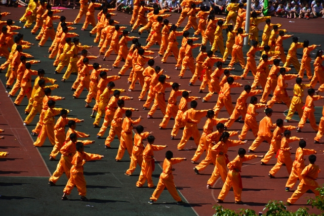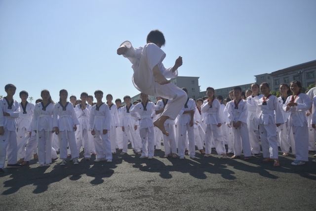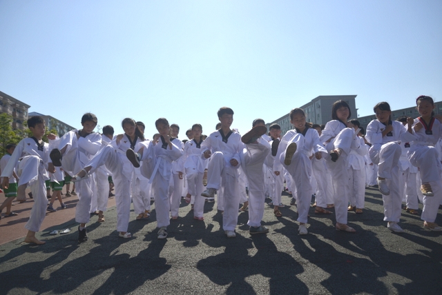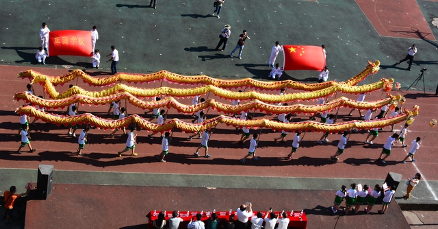 开幕式的最后重头戏是节目表演,六年级的龙队表演活灵活现,一招一式都惟妙惟肖,倾注了陶怀军老师的大量心血;学前班的幼儿舞蹈天真无邪,一举手一投足都招人喜爱,刘长宏老师的指导功不可没;六年级跆拳道表演超越自我,天人合一,能达到如此熟练境界,确实有赖于全体体育老师的辛劳;三年级的韵律操表演自然大方,韵味十足,罗亚丽老师精心编排,体现出较高水平;二年级的舞蹈表演轻灵曼妙,美仑美奂;四、五年级的武术表演规模空前,虎虎生威。整场节目高端大气,嬴得满堂喝彩和阵阵掌声。