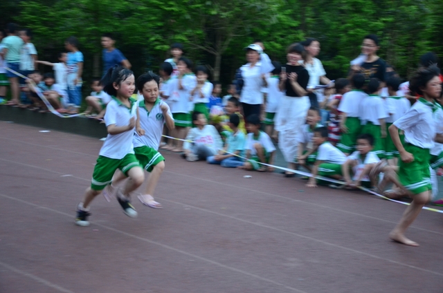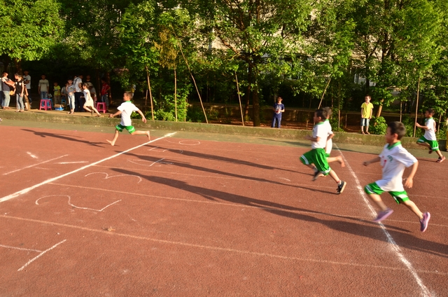 上午11点,小学生运动会开幕式圆满结束,随即进入了紧张的比赛环节。财务总监梁小芬等领导出席了开幕式并在主席台就座。