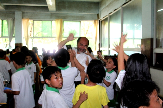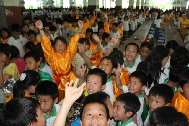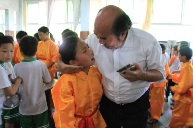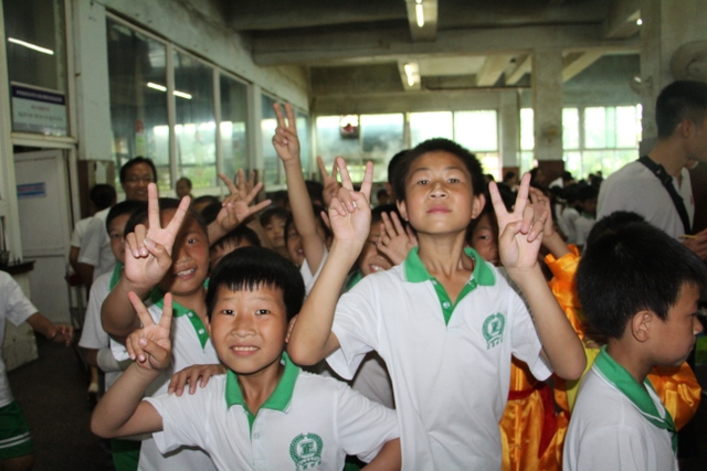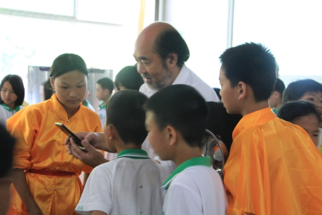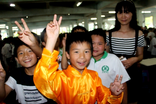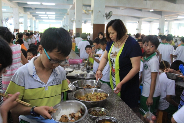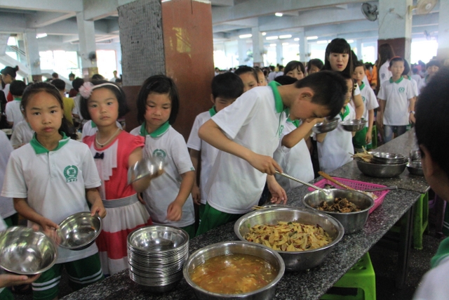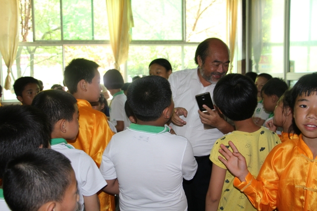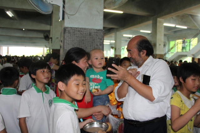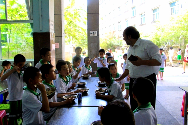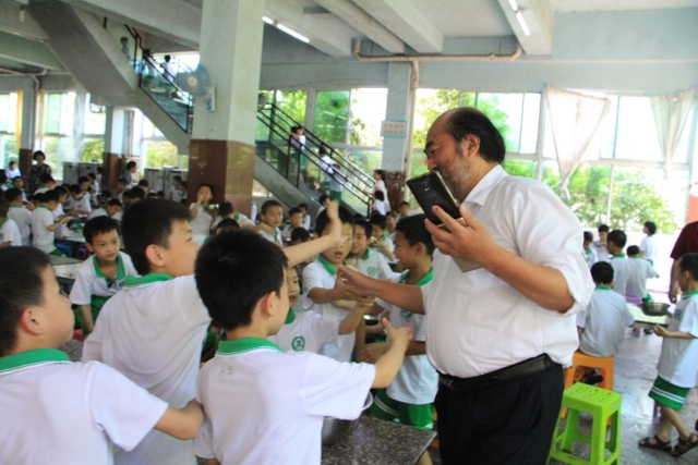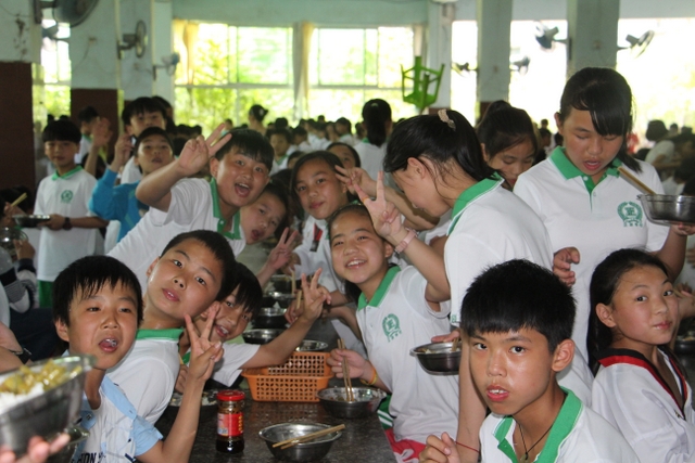 罗校长的讲话赢得长时间的热烈掌声。之后,罗校长拿起碗筷,盛上同学们一样的饭菜,有滋有味地吃起来。