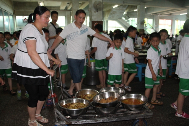看了餐厅,罗校长即席讲话,向同学们祝贺节日,希望同学们在正源吃好,睡好,跑好,健康成长,好好学习,天天向上。同时对辛勤工作的科任教师、生活老师一并致以节日的祝贺、诚挚的慰问和衷心的感谢。对于随同慰问师生的小学部主任罗俊豪、小学部德育主任谢红云、学校食堂部主任徐望柱等,罗校长嘱咐他们要保持食堂工作现有的良好局面,发扬成绩,不断听取师生和家长的意见以改进工作,把食堂工作做得更好。