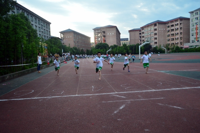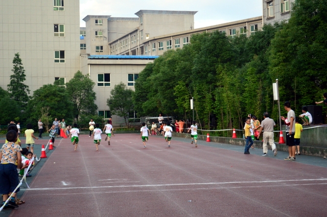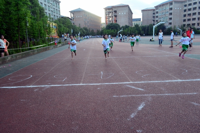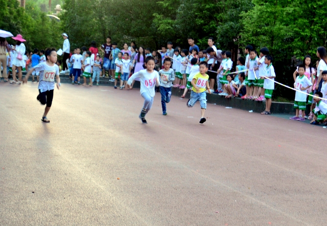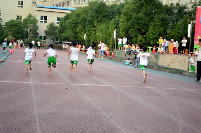 在6月1日上午举行完正源学校第九届小学生运动会开幕式后,下午5:30,烈日渐入西山,一二年级的田径竞赛随即举行。