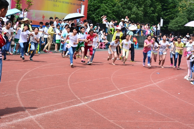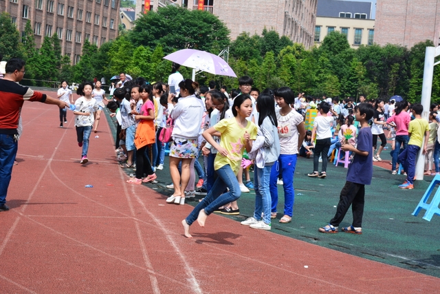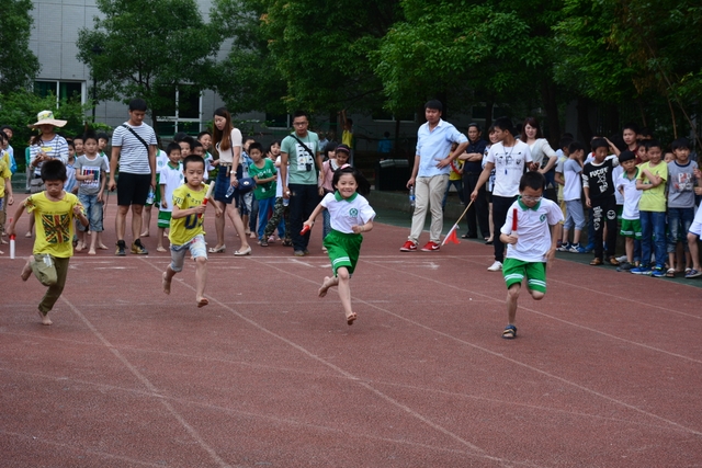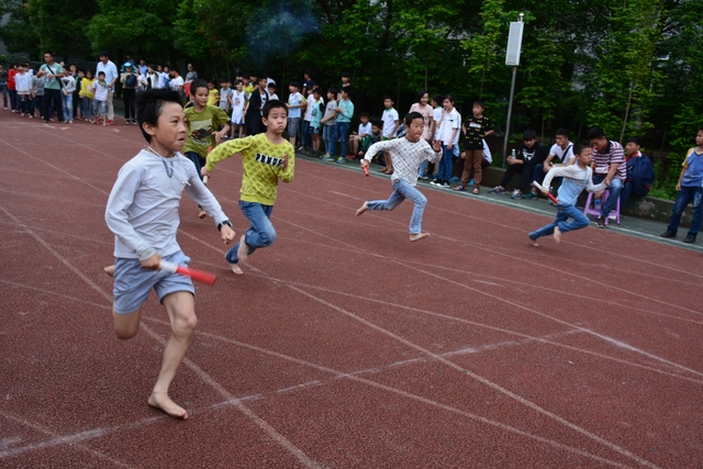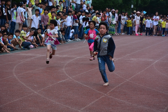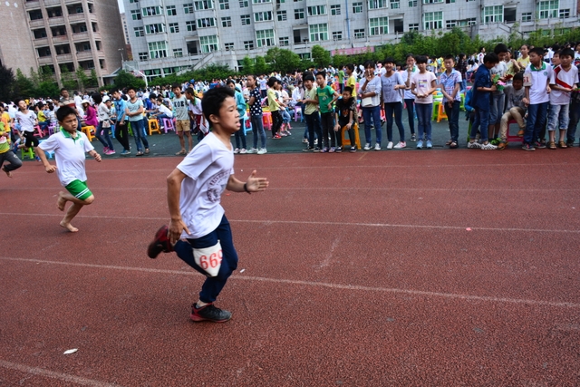 4日下午进行的是1-6年级的20人*50m迎面接力赛。在场观看的同学摇旗呐喊助威,争喊话筒为本班运动员加油发声,场上运动员更是铆足了劲,如飞奔乳豹,又似离弦之箭,脚下生风,脸上肌肉随奔跑的节奏如变了形似的跳动,哪怕摔倒也没关系,爬起继续奔跑!最终接力赛在同学们的欢呼声中结束。不论失败或是成功,你们都是值得喝彩的!