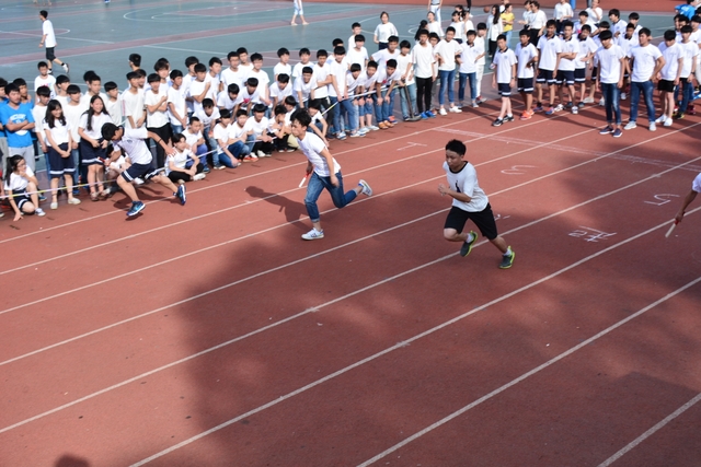 初中部主任曾良古、初三年级主任倪南辉出席活动并发表了简短的动员讲话:曾良古要求同学们珍惜在正源的每一个有意义的活动,珍惜师生情,同学意,坚持友谊第一,比赛第二;倪南辉希望同学们以饱满的精神状态参加比赛,发扬集体主义精神和更快、更高、更强的奥运精神,赛出风格,赛出水平。比赛以班为单位,每班选男女各10名共20名运动员参赛;赛道长度50米,每端10人,男女各站一端。随着裁判员发号哨一响,运动员如离弦之箭往前冲,啦啦队喊加油的呐喊声一浪高过一浪。经过激烈角逐,初189、182、191、188、184等班级分获一、二、三、四、五等奖;其它班级分获优级组织奖、道德风尚奖等各种奖项。