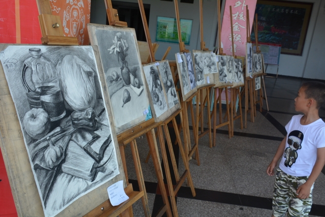 为展示我校美术培训的成果,6月18日至6月20日,我校在交流大厅举办为期三天的学生美术作品展览。本次参展作品百余幅,全部系我校初三、准高一、高一、高二学生的平时作业。