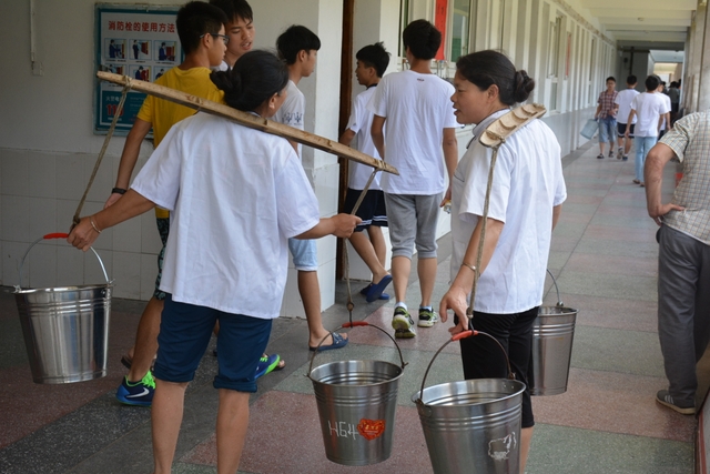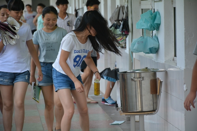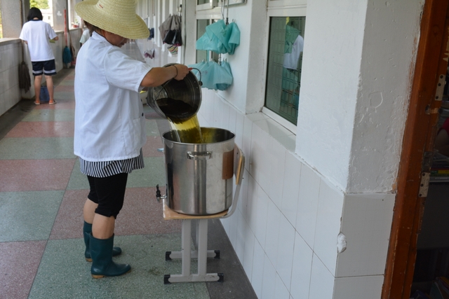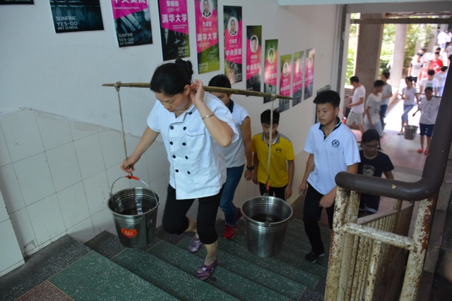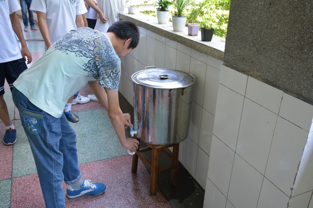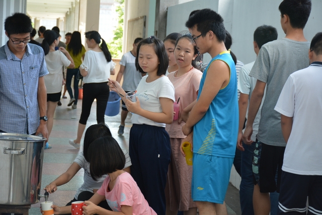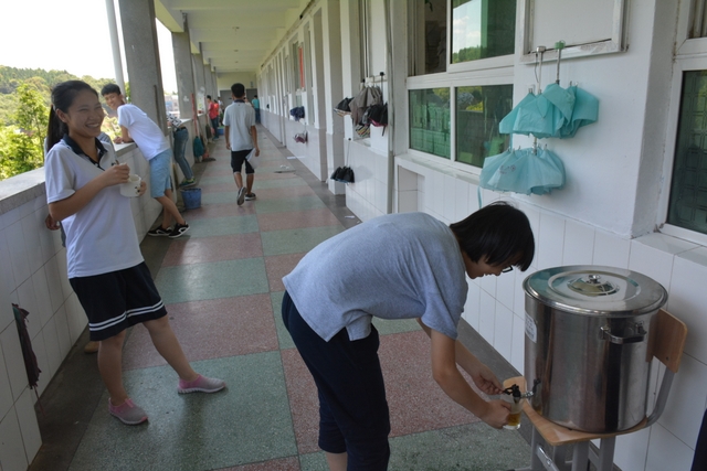 6月21日, 天气转热, 持续进入高温酷热时节, 为做好防暑工作, 校长罗湘云亲自部署防暑降温工作。22日上午,采购人员采购来了桑叶、山银花、杭菊花、荷叶、夏枯球、淡竹叶、甘草、广藿香、薄荷、人参叶、生栀子、藿香正气水、十滴水等防暑药物;食堂工作人员按照校长的指示,烧好水,配好药,配好桶,送好药茶。22日下午16时,湖南气象台发布高温黄色预警,正源的学生早在上午就喝上了药茶。食堂管理处徐望柱主任介绍,按照校长要求,每层楼设置茶桶,每天上午、下午、晚自习各供应一次药茶,每次大致5000斤,每天供应15000斤。学生喝着沁人心脾的凉茶,心里舒服极了,齐夸校长想得周到。