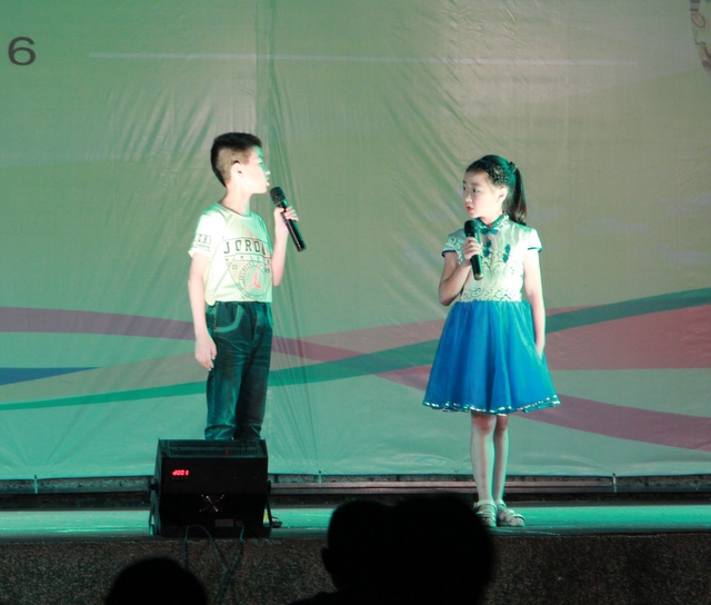 7点38分,悠扬的音乐徐徐响起,三年级的小朋友踏着音乐的节拍拥上舞台,天真稚嫩,清纯可爱,用委婉清脆的音符宣告《我的快乐我作主》。传统的三句半经过小朋友童真童趣的演绎,别开生面。《夸正源》夸得别具一格,夸得独具风味。《森林爷爷》用对白、情景模拟的童话方式,形象地演绎了森林在涵养水源、保护人类、保护地球的重大作用。《一只鸡腿》用对白方式,讲述了发生在班上团结友爱、乐于奉献,有困难就上、有好事就让的有趣故事。《课间小风波》以对白和模拟课间风波的方式,将故事演绎得趣味横生,让人在捧腹中慢慢体会其中有真情,其中有真味。《弟子规》和《真情》以话剧这一独特方式,展示了正源在语艺教学中注重国学教育孝道教育的成果。《三借芭蕉扇》和《唐僧西天取经》用话剧演绎经典的神话故事,演绎得声情并茂,表演得惟妙惟肖。《吹牛》用夸张方式讲相声,令人捧腹,满场笑声不断。《运动会》用讽刺手法,讥笑奉承拍马等习气,辛辣深刻。最后在大合唱《兄弟无数》中落下帷幕,台上台下互动热烈。