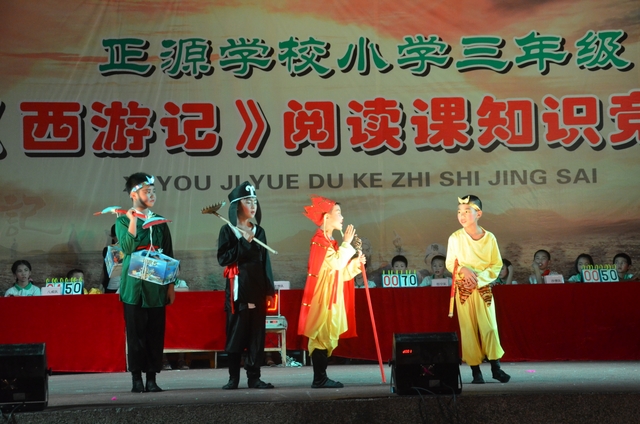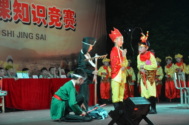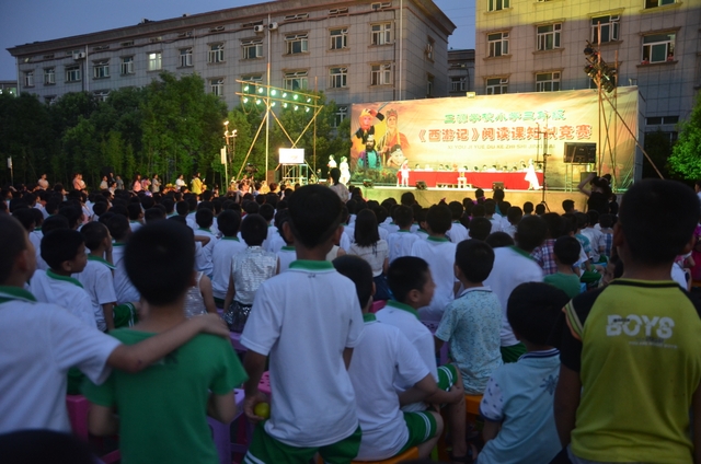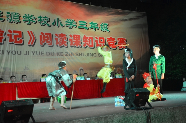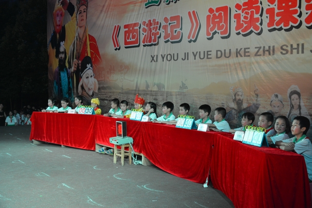 6月26月晚上7点30分,一场“弘扬国学,品读西游” 文化大餐在学校小学生运动场激情上演。这场小学三年级《西游记》阅读课知识竞赛的举办,是我校深化语文教改,弘扬国学经典的成功范例。