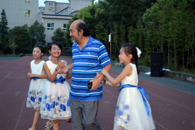 同学们亲热地挽起校长伯伯的手臂,欢迎校长伯伯的到来