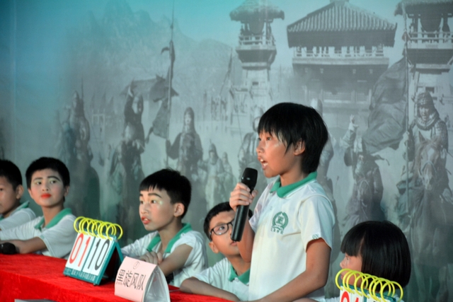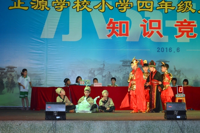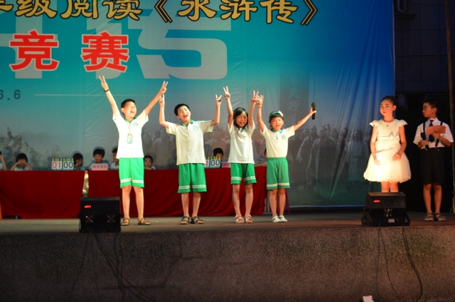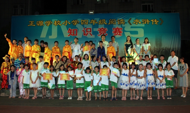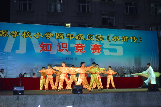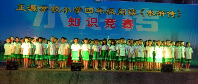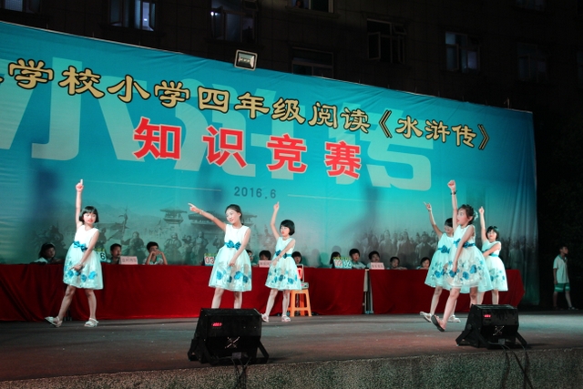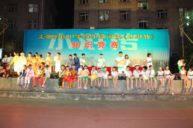 6月27日晚,小学部四年级在运动场组织举行阅读《水浒传》知识竞赛。紧张激烈的比赛扣人心弦,过关斩将的战果令人折服。
