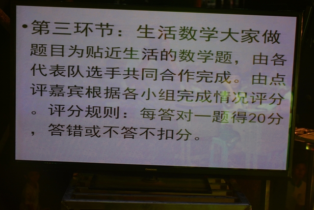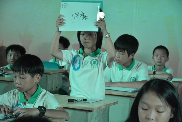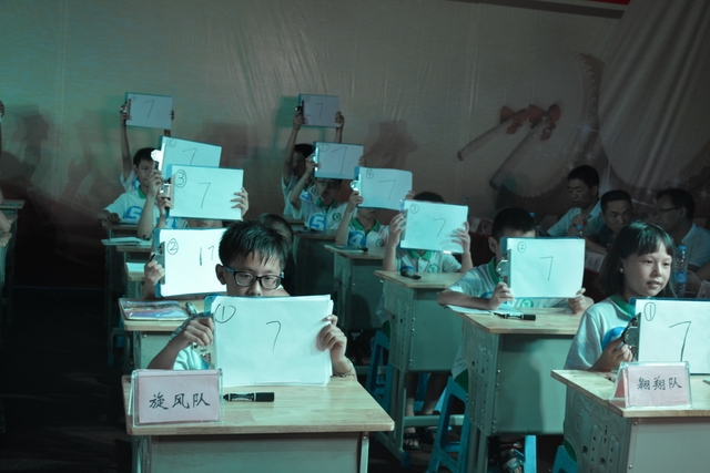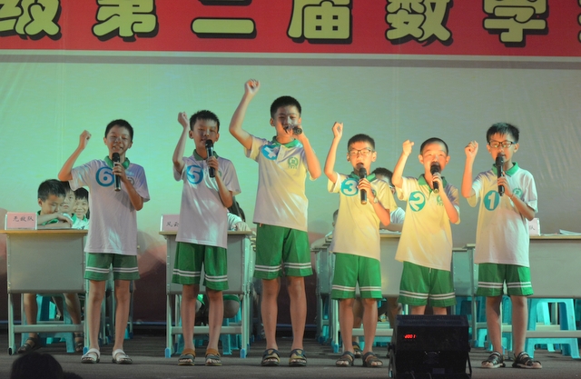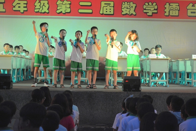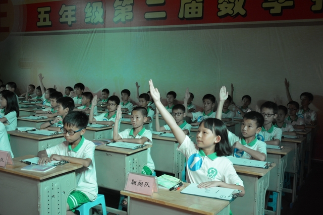 本届擂台赛有星火队、战狼队、无敌队、风云队、热火队、旋风队、翱翔队共7支代表队参赛,分别由五年级15个班的7位数学教师各自组队,每队6名选手,共42名选手参赛。比赛分为三个环节,即必答题环节、抢答题环节和生活数学大家做环节。必答题环节赛的是整体实力,抢答题环节赛的是整体实力加抢答速度与规范,第三环节赛的是团队协作能力(集体讨论答案,有人画图,推选代表表述)。第一环节同学们的正确率都很高,虽然比分不相上下,比赛一时波澜不惊,但显示出正源学校数学教学的扎实功底,令人钦佩。第二环节抢答题则“风乍起,吹皱一池春水”,风云突变,黑云压城,每个选手、每支赛队剑拔弩张,争先恐后,举手抢答时胳膊肘碰击桌面的声音,有如“大珠小珠落玉盘”。有的同学抢答出现错误,被倒扣分,台下的同学欢呼一片,此起彼伏,说出正确答案。比赛一波三折,紧张激烈,高潮迭起,扣人心弦。第三环节各队群策群力,各人竭忠尽智,除了一个队惜败,其他队都得出了正确答案。