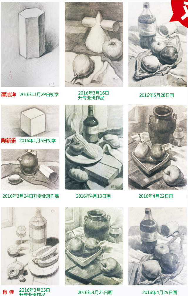 美术高考班学生要有冬练三九夏练三伏的决心和信心,充分利用一切可以利用的时间,决战三年,不达目标誓不罢休,中途决不放弃对美术专业的学习和高考。