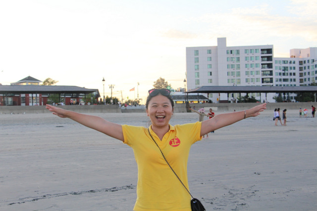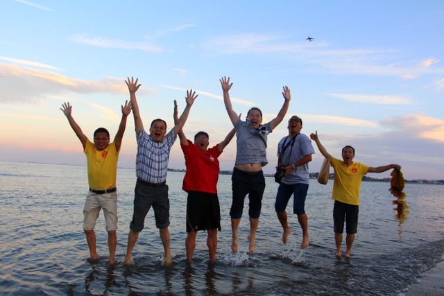 顶尖学府让我们思想得到开阔,让我们的心灵得到洗礼!而下午游览波士顿海滨则是让心情得到放松。夏日阳光下的波士顿海滨是那样的耀眼和迷人,海风吹拂,碧波荡漾,点点白帆,随意逐浪……蔚蓝色的大西洋充满魅力,波士顿港口令人赏心悦目,流连忘返。陶老师和罗校长先后走向大海,零距离感受大西洋的魅力,和老师们一起领略波士顿的异域风情!