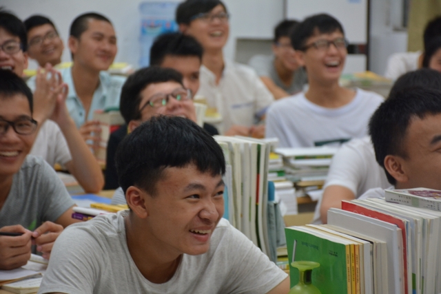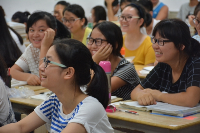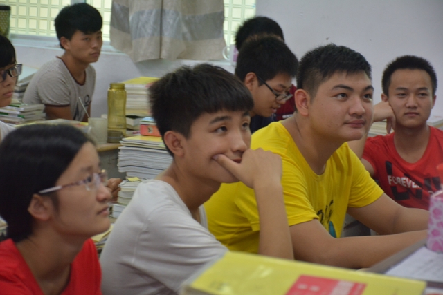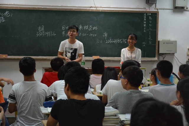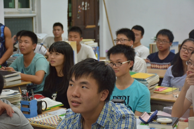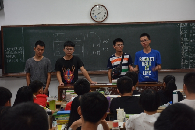 2016年7月30日晚,正源学校22个高三(2017届)教室里一片欢声笑语:来自耒阳互助学社的50多位大学生志愿者正分布在各个教室,向正源高中生讲述他们现在的大学,回忆他们曾经的高中学习与生活。