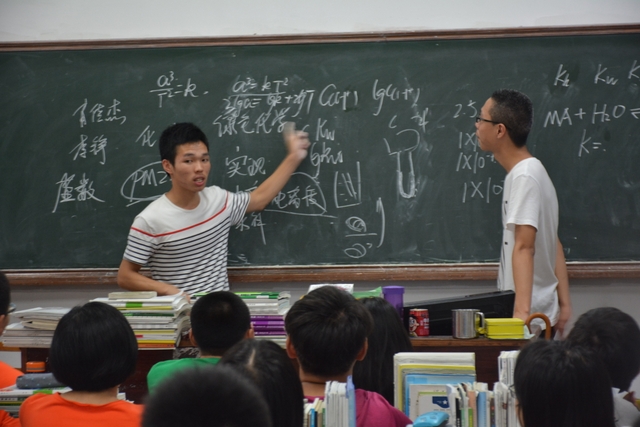 一些学有专长的志愿者直接就在黑板上写写画画,讲起了题目,让讲台下的高中生抻长了脖子,瞪大了眼睛。