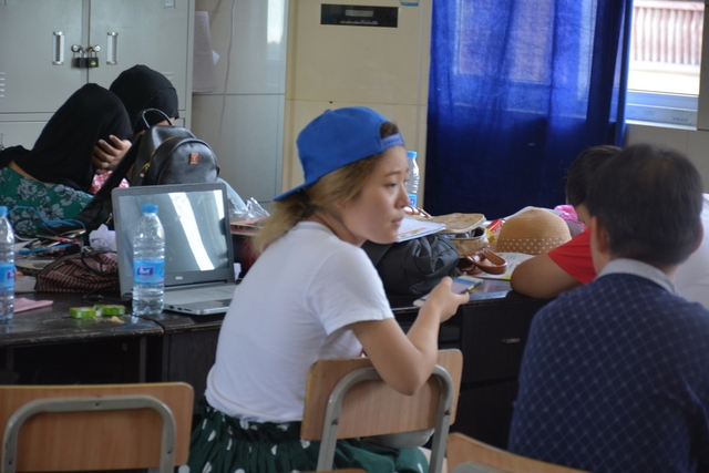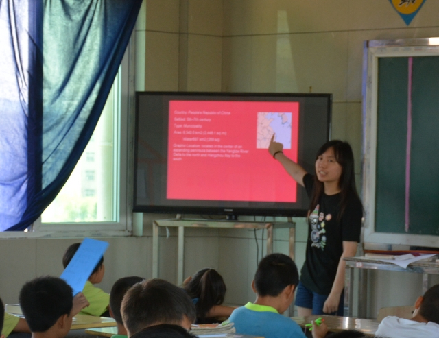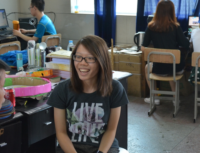吴美玲,志愿者中唯一的中学生,活泼开朗,一口流利的英语非常了得。问她怎么参加这个国际志愿者组织,她说在手机上看到招募志愿者广告就报名来了。问她在这群大学生中会不会有压力,她说你看我像有压力的人嘛?不管是交流还是上课,都是那么得心应手,怎么会有压力呢?后得知她是华东康桥外国语学校高一学生,父母都是高校教授,从小就立志要当外交官。她说:“我行的,相信我!”