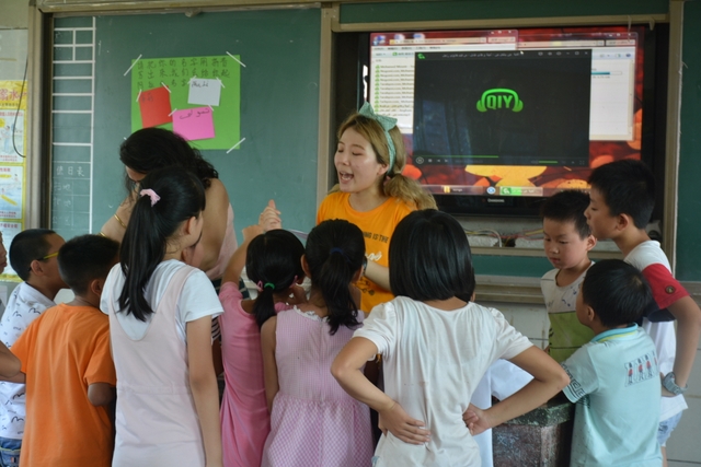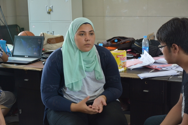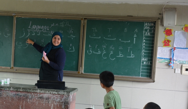 NourAbdelGhaffar,来自非洲埃及CairoUniversity的女大学生。问她为何跑到中国作志愿者,她说中国和埃及都是历史悠久国家,做志愿者是坚守心中的圣洁。问她这段时间的感受,她说没来前有点担心,担心自己的英语水平与人交流有障碍,担心自已讲课孩子们听不懂,来了后觉得没那么困难,可以用肢体语言比划补充,还可以在黑板上画图。问她对夏令营孩子的印像,她连伸出两个大姆指。