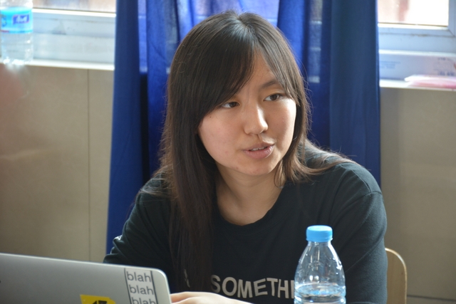 YinHui,来自马来西亚的华裔女孩,现就读于清华大学人文科学实验班。跟她聊天说不介绍不看简历都会将她认作中国女孩,她说她父母本来就是华人,她是华裔后代,她马来西亚语、汉语、英语说得都很流利。问她怎么跑到这里作志愿者,她说艾森克国际志愿者组织在清华大学影响比较大,原来跟正源学校合作比较好,师姐推荐她来就来了,果然不错,学校吃住都安排得很好,学生很纯朴,很好学。