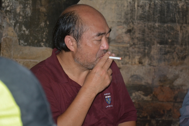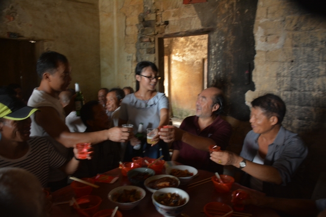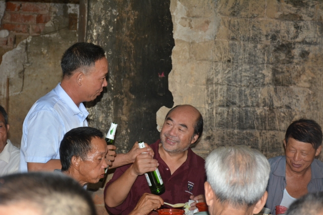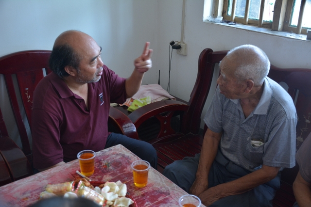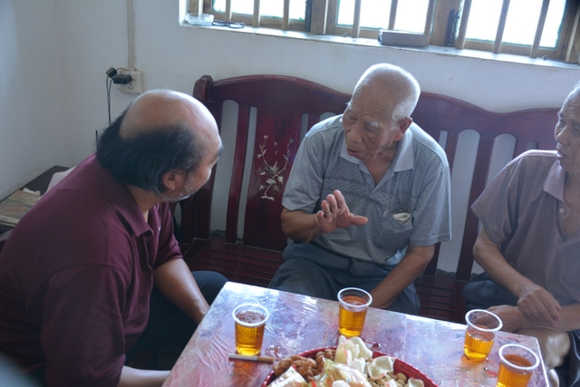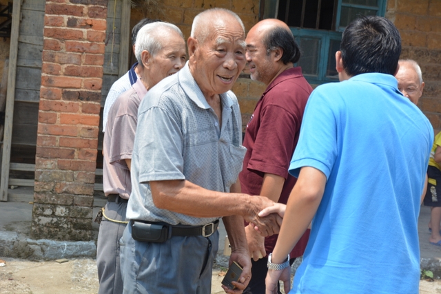 本村罗氏宗族最年长的与罗校长热切交谈。(罗校长的祖上是这里的,是其曾祖父那辈才搬到太平墟的)