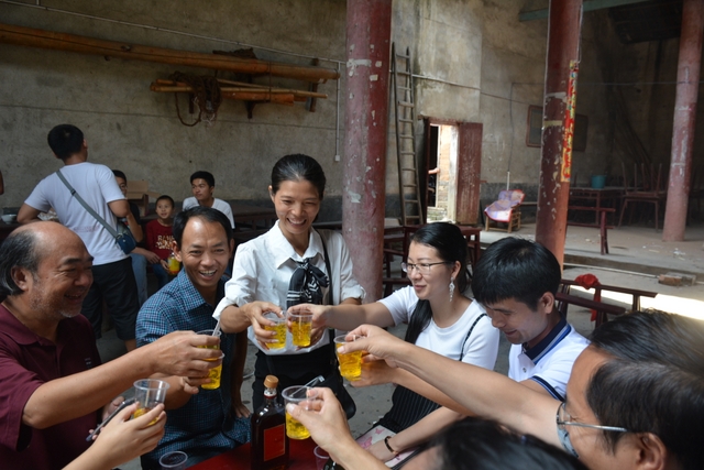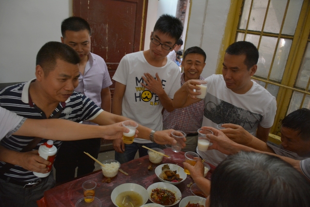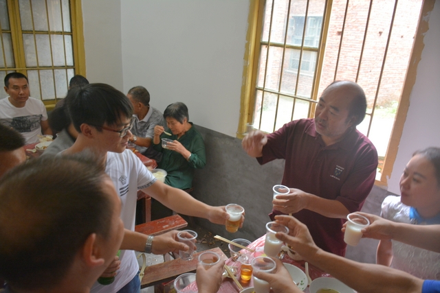 唐冬燕父母向罗校长及正源老师敬酒,感谢正源对唐冬燕的培养。