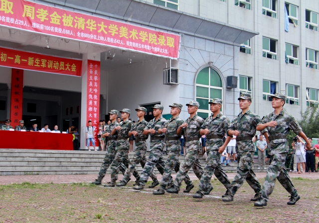 9月5日上午,开学典礼刚一结束,学校随即举行初一年级、高一年级新生军训动员大会。