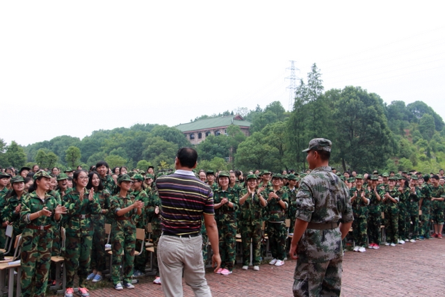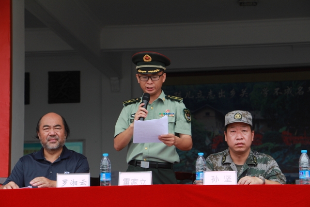 罗校长在同学们的欢呼声中发表讲话。他肯定了驻耒75104部队的光荣历史,是一支威武之师、雄壮之师、胜利之师,有机会接受他们的军训是我们的光荣。罗校长还从前天是抗日战争胜利71周年联想到近代以来八国联军入侵中国、火烧圆明园,抗日战争的惨痛代价等历史,告诫同学们懦弱就要挨打、落后就会亡国的道理,要求同学们必须严守纪律、服从命令、刻苦训练、顽强拼搏,求真务实,认真军训,做到不辱使命,高标准地完成各项训练任务,给每一位同学留下难忘而美好的回忆。