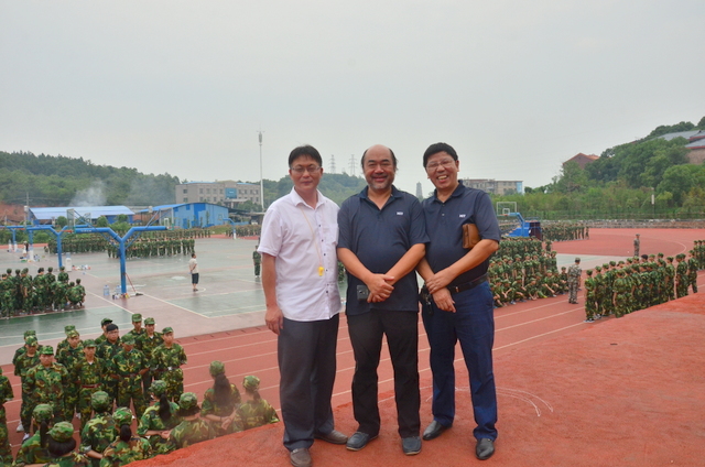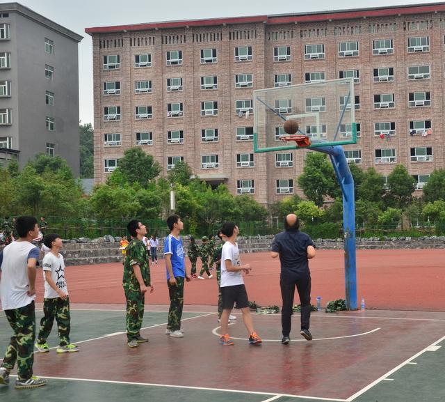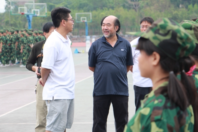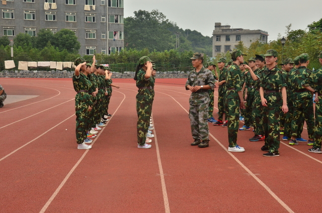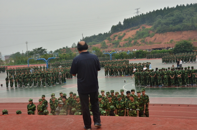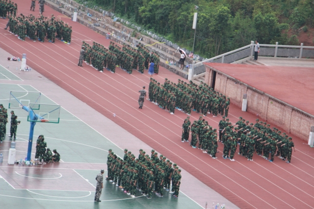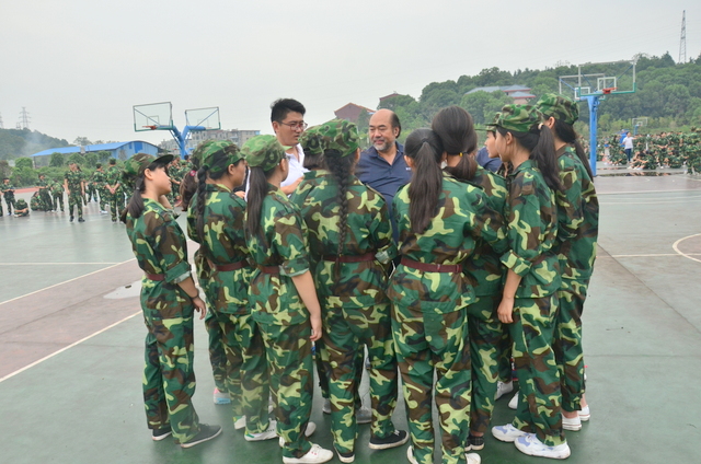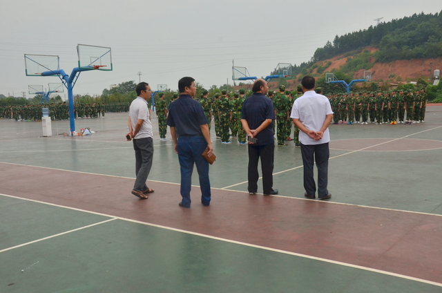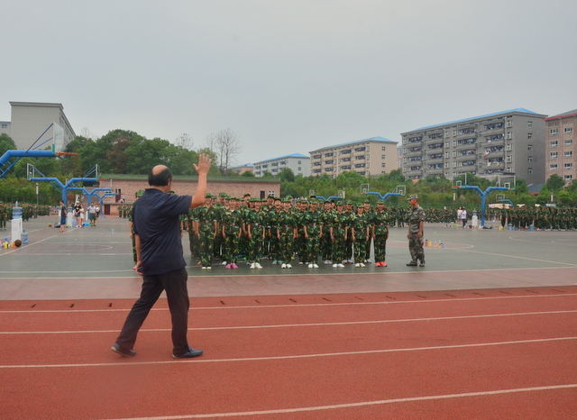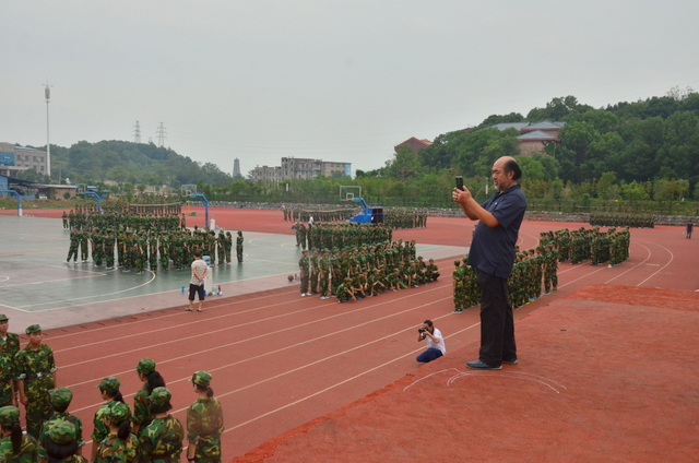 四点多钟,罗校长来到中学生运动场,站在主席台上,看到各班认真训练的场景,非常满意,随即用手机拍下一个个精彩画面,上传到微信。随后,来到同学们中间。所到之处,“校长好”“校长好”的声音响成一片。校长亲切地与同学们交流,问累不累,鼓励同学们听从指挥,刻苦训练,好好向解放军叔叔学习,也要注意身体,谨防意外。