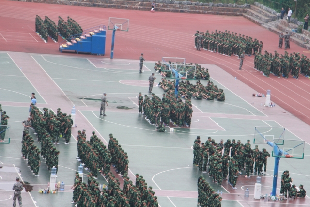 操练一会,教官们还让同学们坐下来,教同学们唱歌,教如何赛歌,有的班还让同学表演街舞之类。