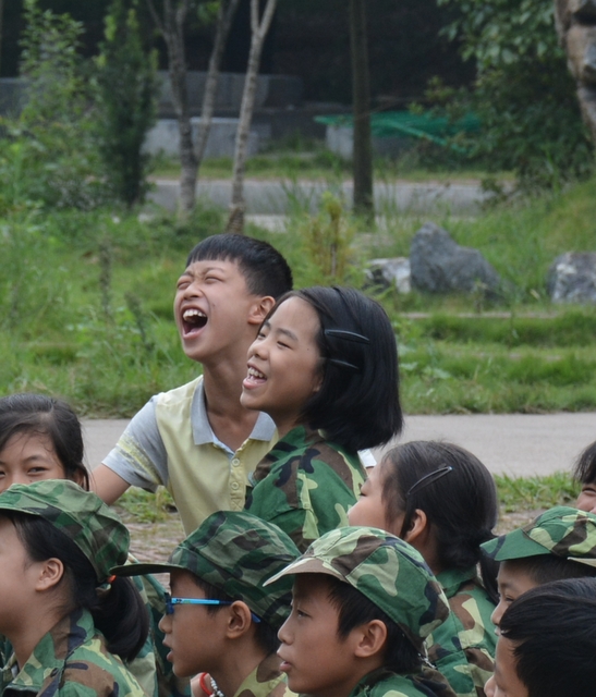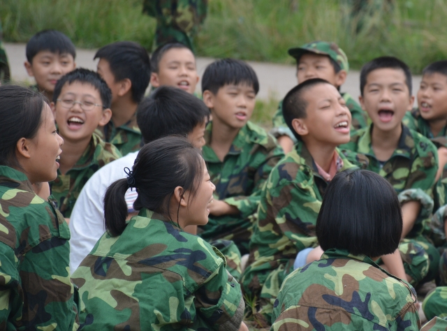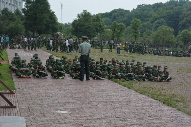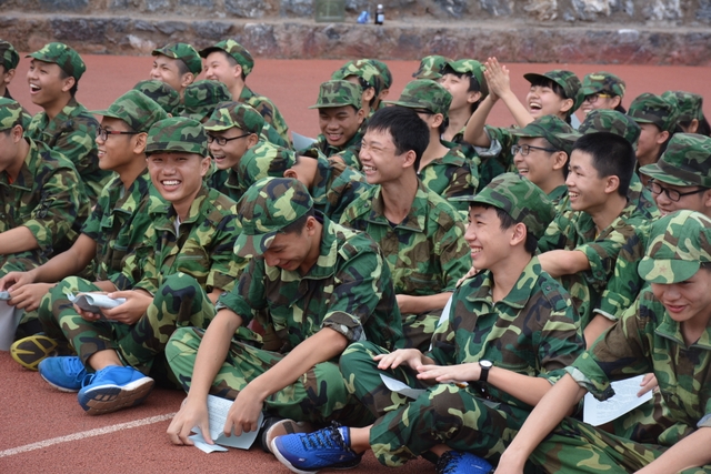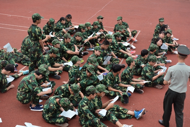 像今天训练场上这种开启互黑模式的拉歌,民间太少见,还真有点拉仇恨的味道。好在大家都是一个师傅教的,舌枪唇剑,难分仲伯,谁也没沾到便宜,都是满脸的笑容。同学们对军训的热情,对班级集体荣誉感的认同则在拉歌中得到提高。